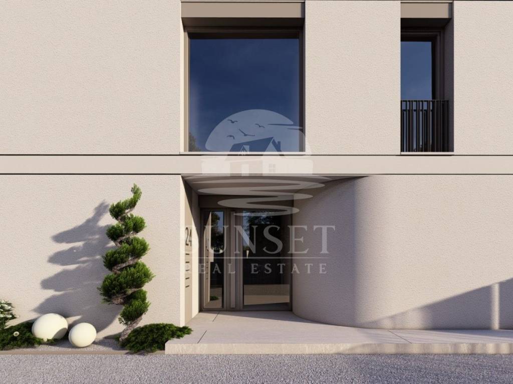 The apartment is part of a gated complex with an electric ramp, ensuring peace, security, and exclusivity. Carefully selected materials have been used in the interior Italian ceramics, parquet flooring in the bedrooms, and Istrian marble in the common areas of the building.