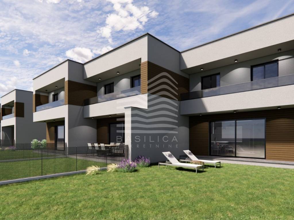 Novaki - Ljudevita Gaja, kuće u nizu. Projekt u fazi izgradnje, dovršetak se očekuje sredinom 2027.g. U ponudi je 9 kuća u nizu. Rubne kuće su sa većim vrtovima, srednje su sa manjim.