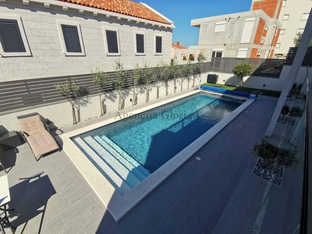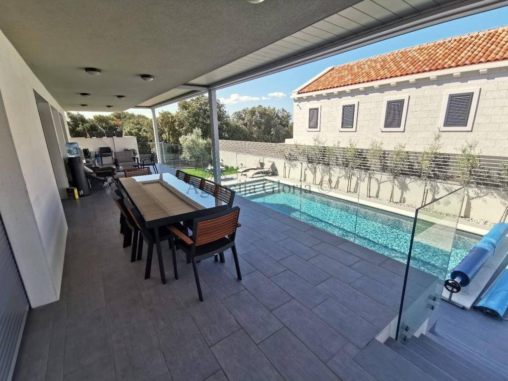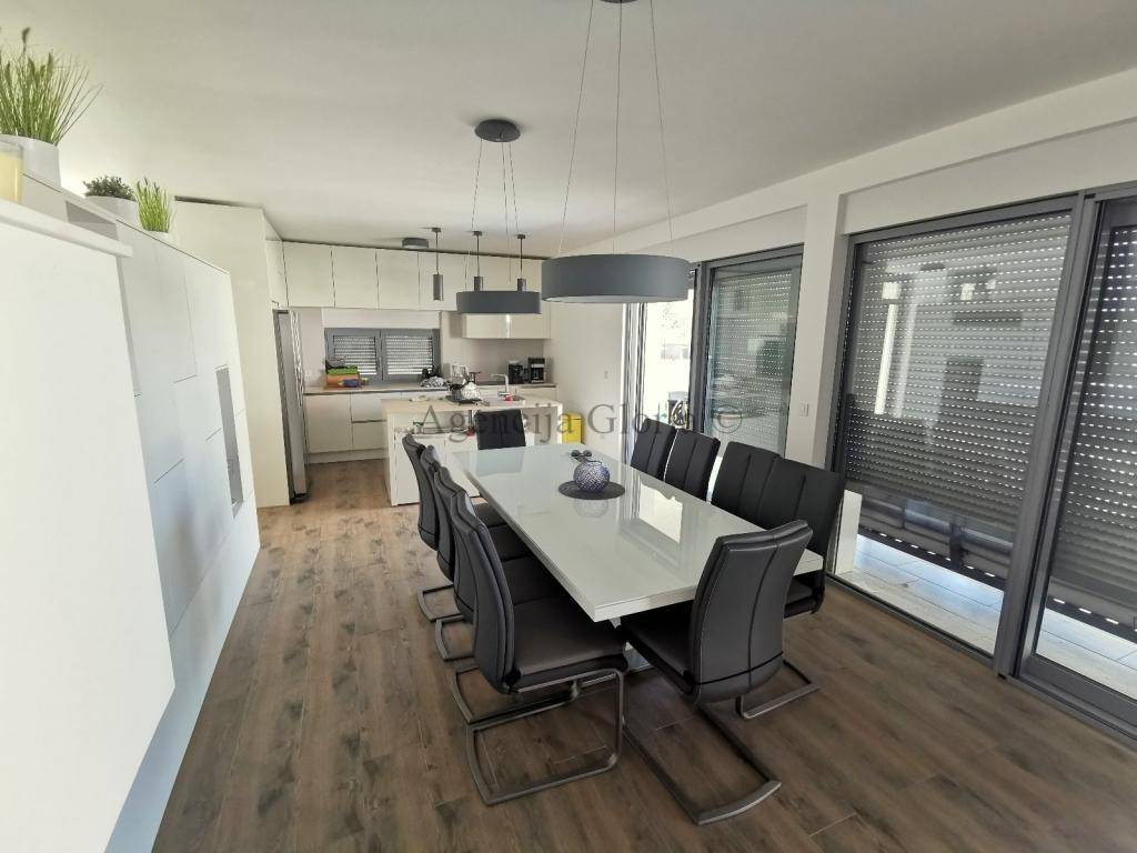 Vrhunska kvaliteta gradnje, ugrađeni proizvodi renomiranih proizvođača-parket i keramika prve klase. Grijanje riješeno preko solarnih sustava i podnog grijanja na dizalicu topline (prizemlje). Svaka soba je klimatizirana. Grijani bazen i automatska pergola.Kuća ima osiguranih 8 parkirnih mjesta.