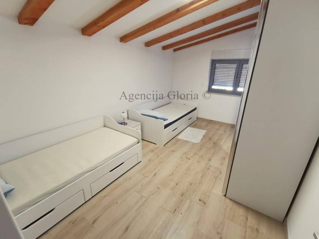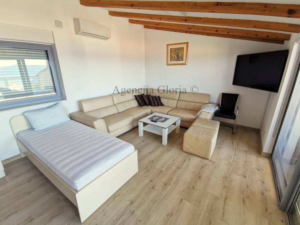 Na prvom katu su smješteni dva kompletno opremljena dvosobna stanas velikim loggiama s kojih se prostire prekrasan pogled na more.