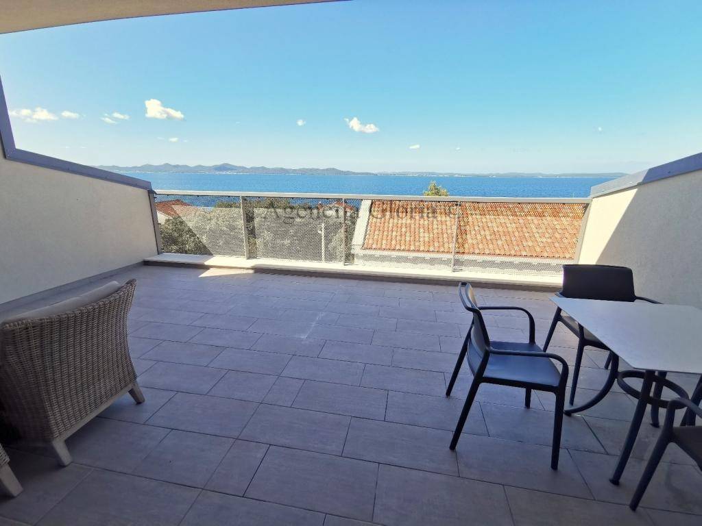 Na drugom katu odnosno potkrovlju je smješten dvosoban apartman i velika terasa s koje se pruža prekrasan otvoren pogled na more i grad Zadar.