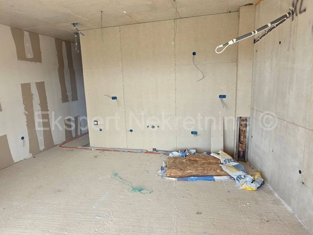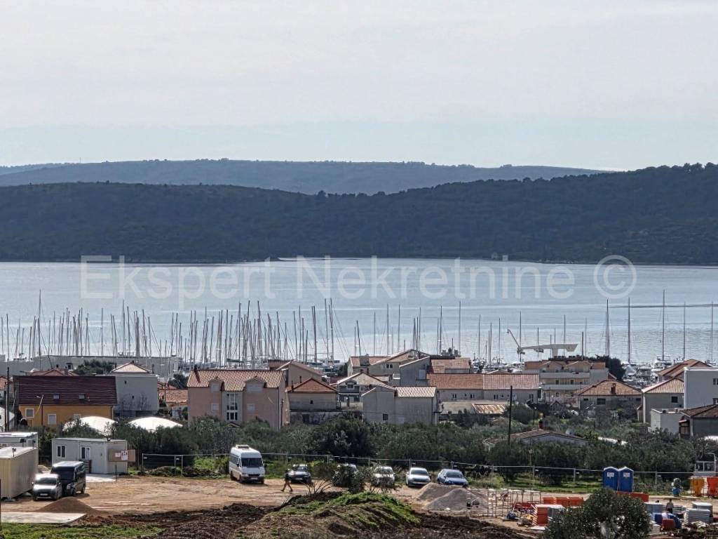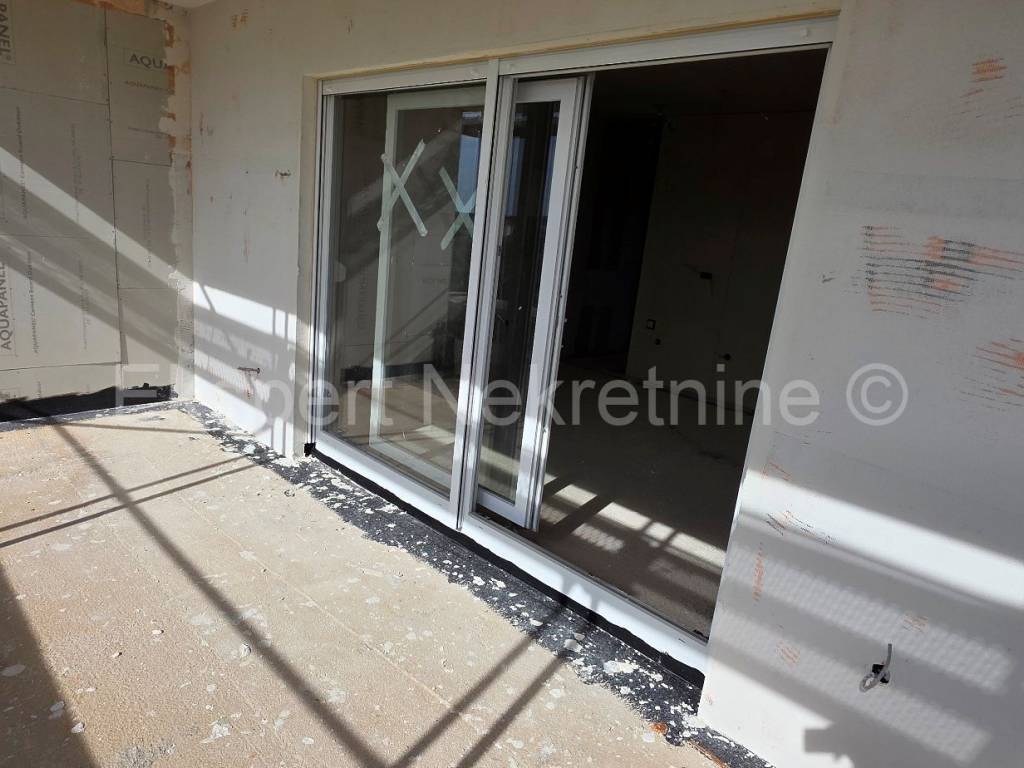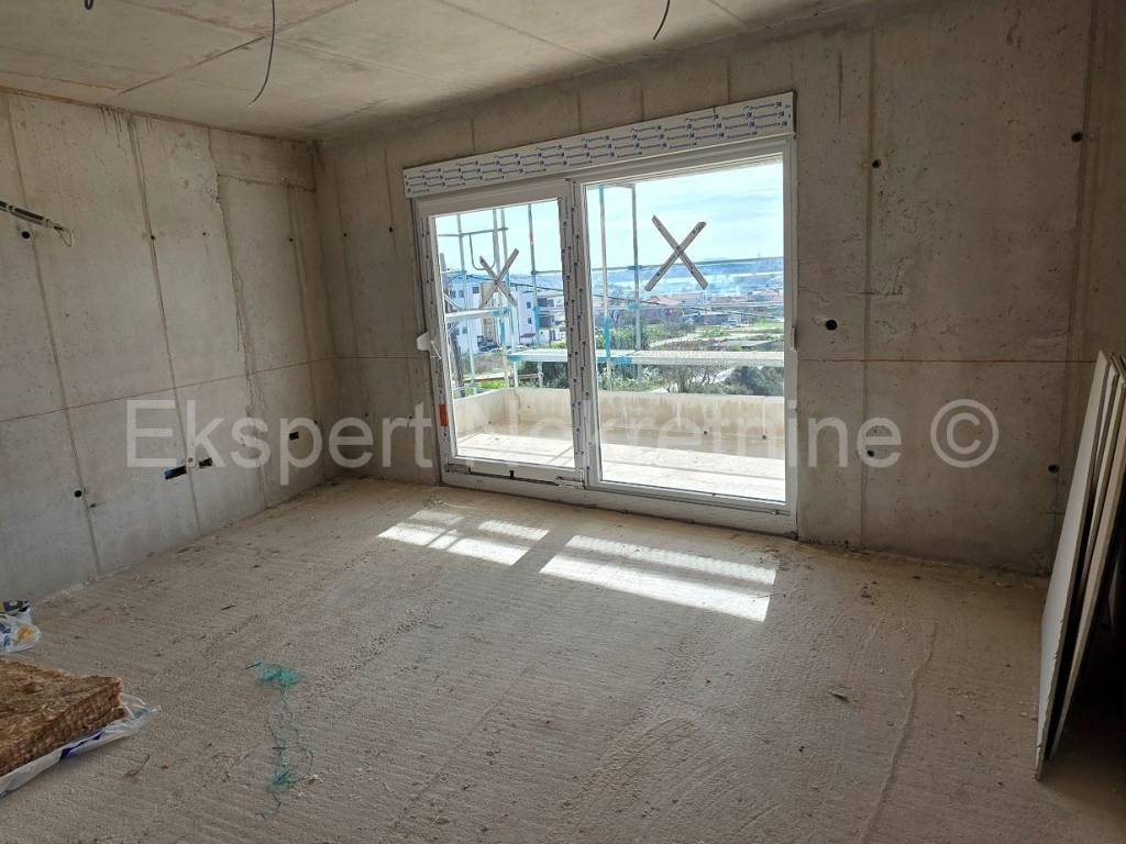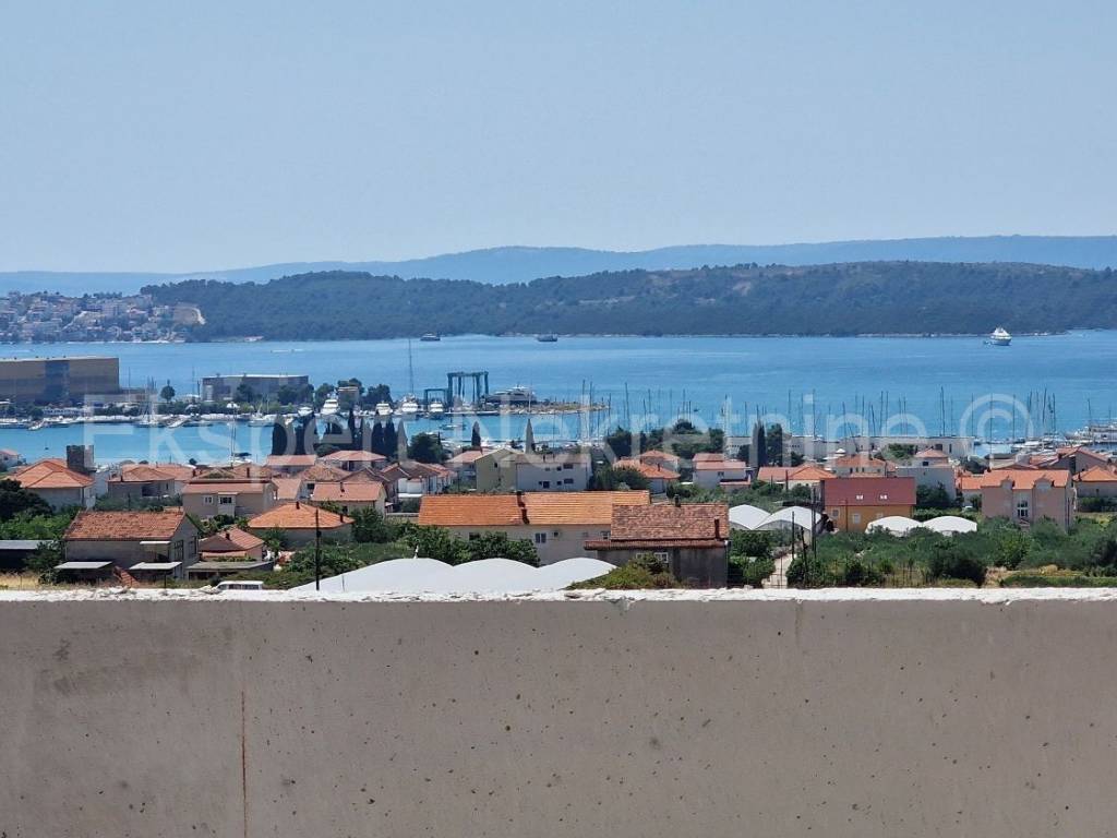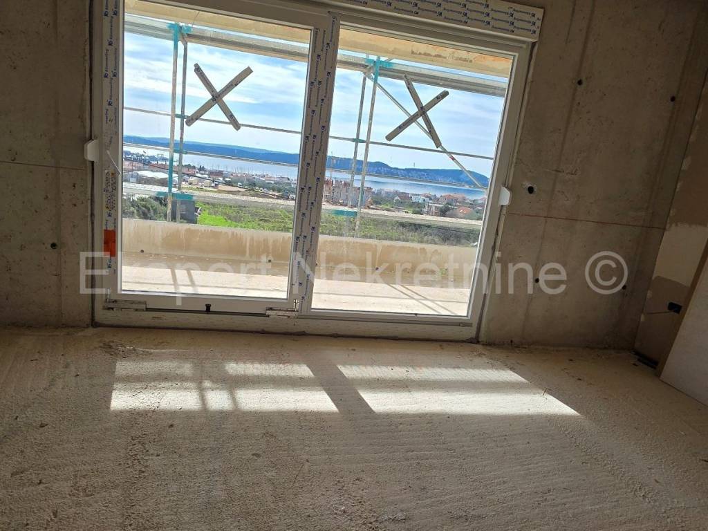 Seget Donji, comfortable two-bedroom apartment 66 m2 in a new building, on the first floor, south-east-north oriented, with a large loggia (13.5 m2) with an open view of the sea and islands in a building in an excellent and quiet location 1100 m from the sea and the beach. The apartment has two bedrooms, hallway, bathroom, pantry, kitchen with dining room and living room and a large loggia (13.5 m2) with an open view of the sea. The apartment also has one outdoor parking space. The construction is in the final stages and the planned completion is summer 2026. Excellent and quiet location, 1100 m from the sea and the beach. Quality construction (PVC joinery with triple glazing, large sliding walls, electric shutters, mosquito nets, underfloor heating throughout the apartment, air conditioning, quality ceramics, etc.). Ownership is in order. Payment by construction phases.