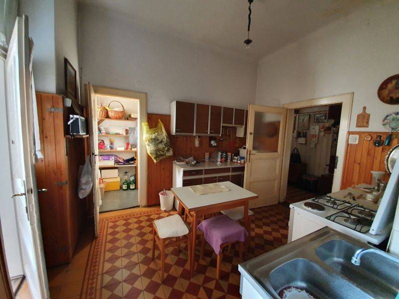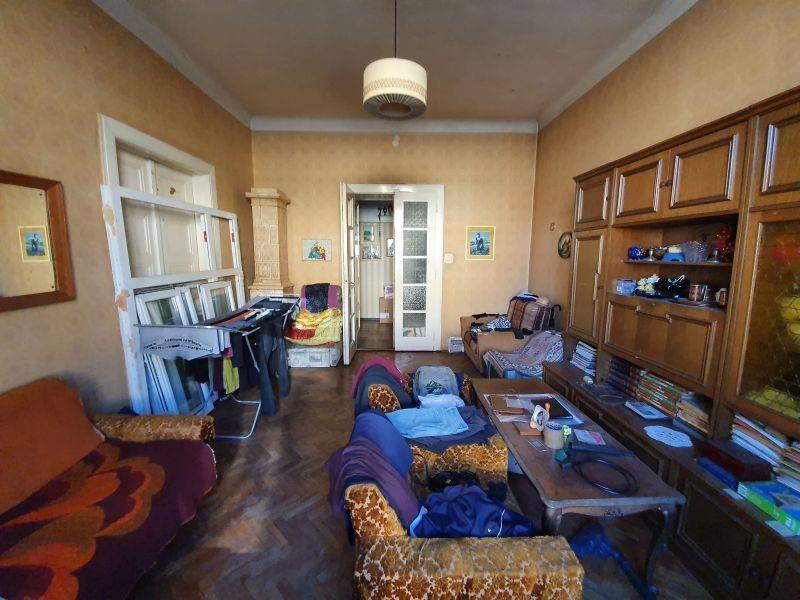 Sastoji se od dugačkog ulaznog hodnika, na desno se nalazi izdvojeni wc, iza njega je kuhinja sa ostavom i izlazom na balkon - koji gleda na dvorište - i mala djevojačka soba, te u nastavku kupaona sa kadom. Na lijevo i ravno tri su velike, međusobno prolazne sobe. Visina stropa je 3,30m.