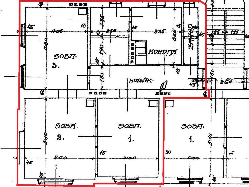 Stanu pripadaju dvije šupe u podrumu, svaka po cca 4m2, te suvlasništvo tavana cca 20m2.