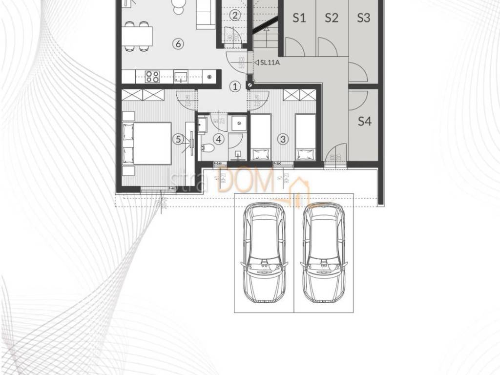Each residential unit is provided with the required number of parking spaces according to the urban plan of the city of Pula, dimensions 2.50m' x 5.00m'. Parking spaces cannot be changed or omitted from the composition of the residential unit.