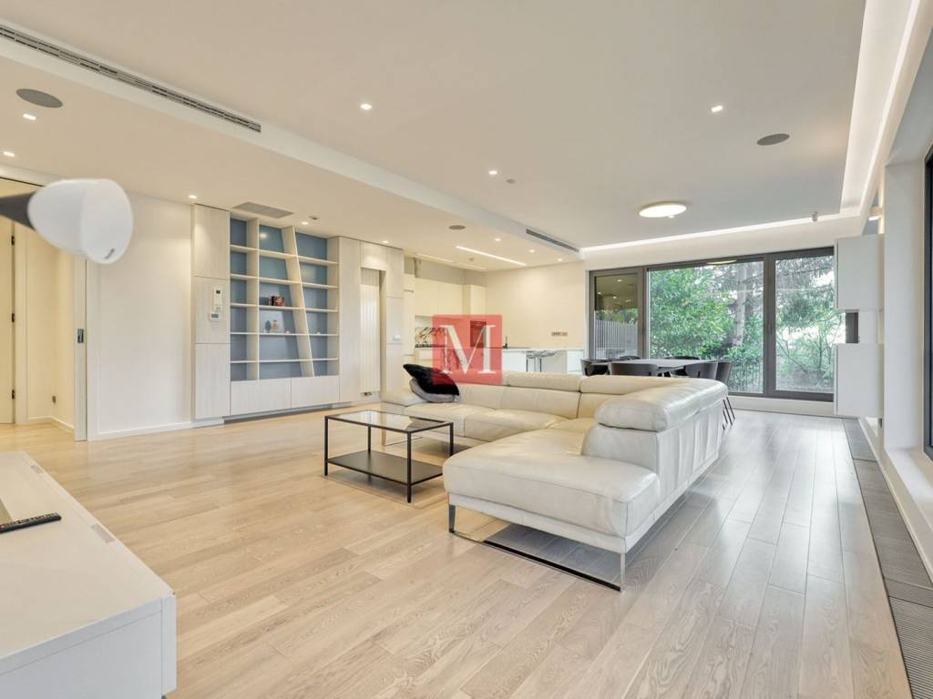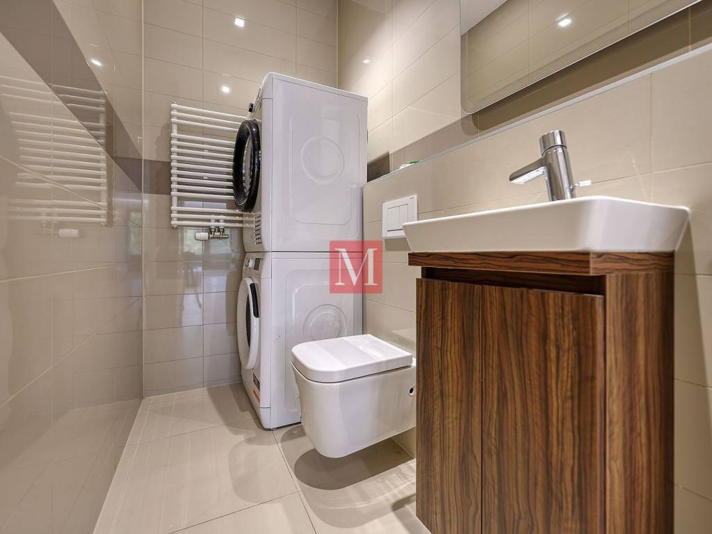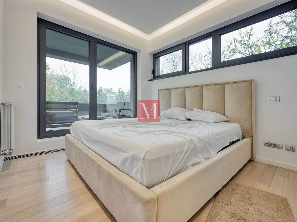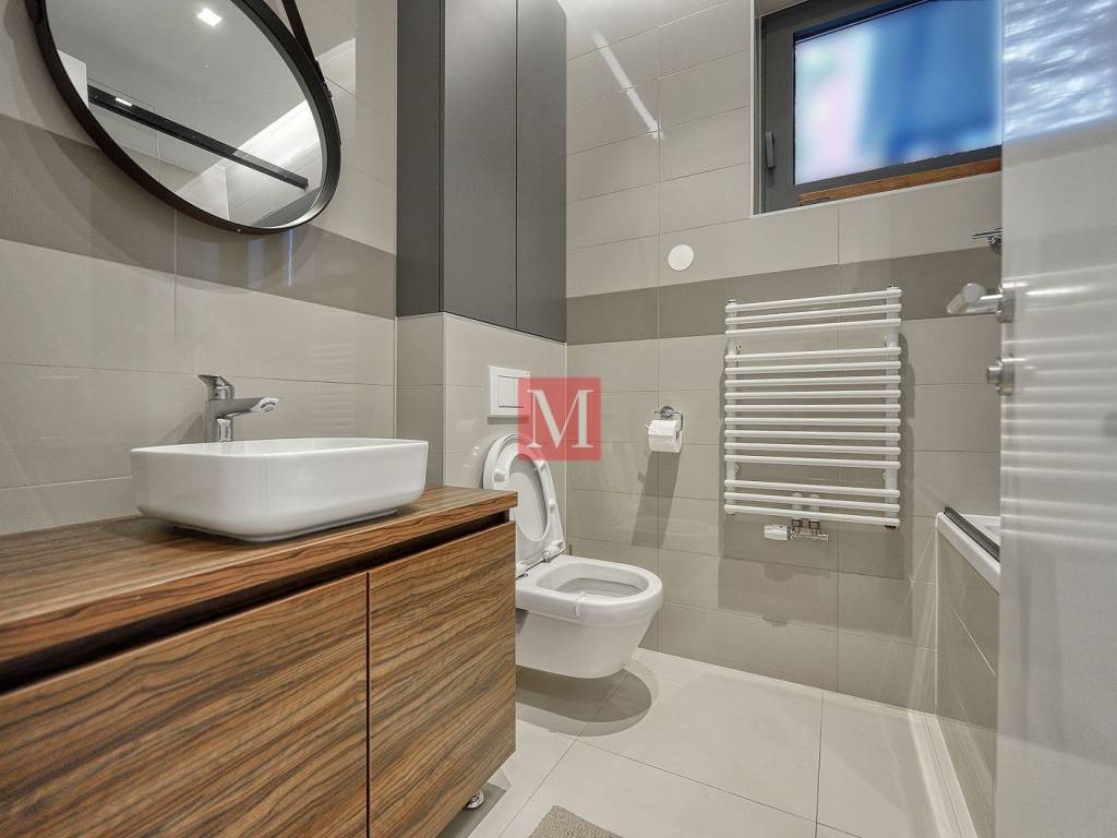 Attractive two bedroom apartment of 120m2 with a large terrace & offering beautiful views of the city in a luxury new building in Pantovčak. It consists of an entrance hall, gorgeous open space living room with dining area, kitchen and exit to the terrace (36m2), 2 bedrooms, one bathroom (bathtub) and a guest toilet. The apartment is full of light thanks to the large glass walls and the western orientation. It comes with an outdoor parking space in the yard. Quiet and green environment, close to the strict city center and all amenities. Long-term rent with a mandatory deposit. For people with style - recommendation of the agency! Agency fee: 1 month rent+VAT.