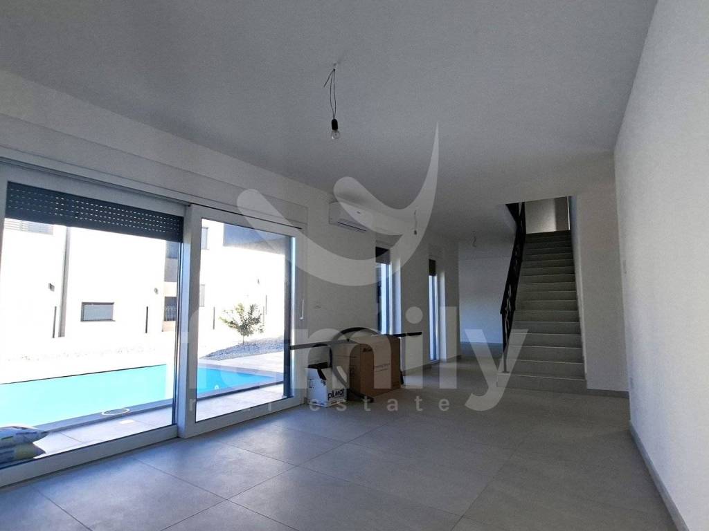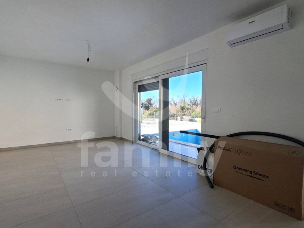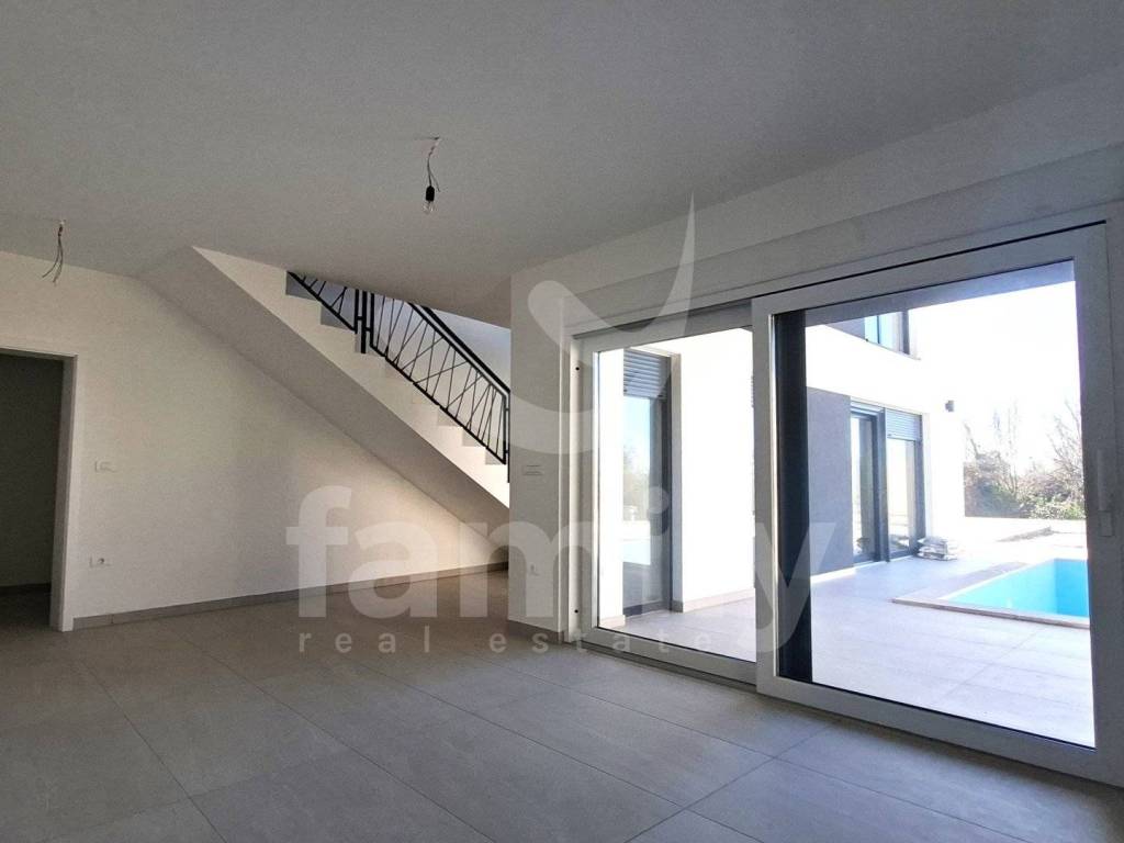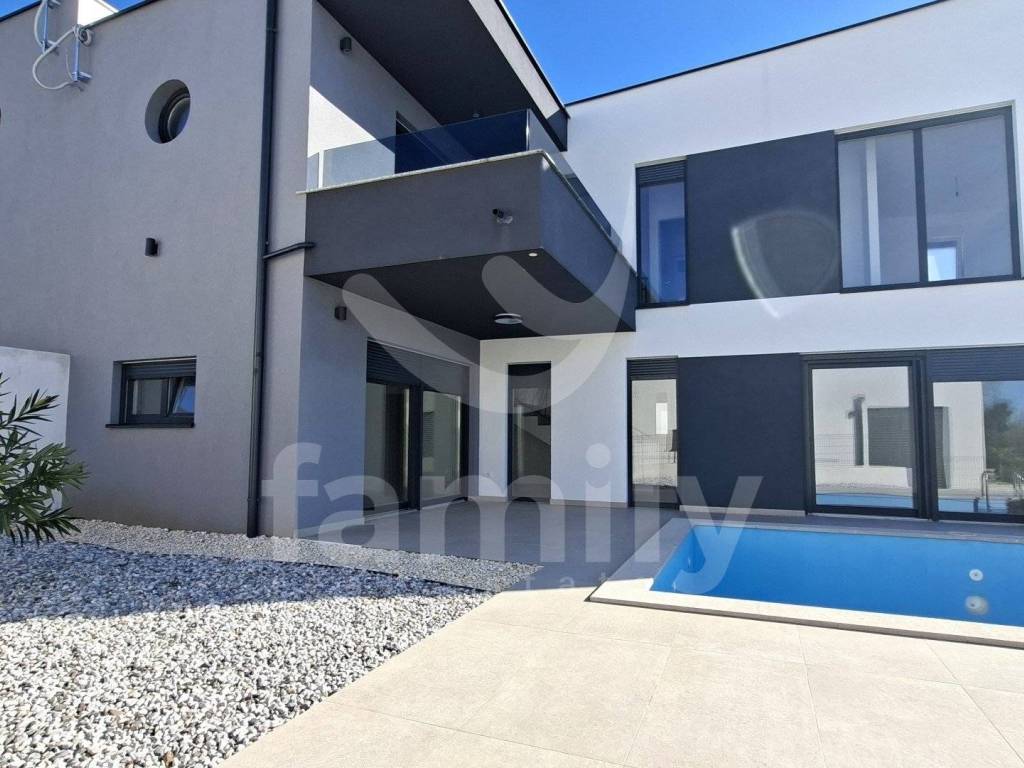Within the municipality of Ližnjan there is a high-quality two-story house with a modern design of 165 m2 built on a plot of 370 m2. The property consists of an entrance area leading to the living room combined with a dining area and an exit to a spacious terrace connected to the swimming pool. On the ground floor of the house there is also a bathroom and a storage room. A modern staircase leads to the first floor of the property where there are three bedrooms and a bathroom, one of which leads to a balcony with a sea view. The newly built house is equipped with PVC three-layer joinery with roller shutters, the floors and bathrooms are covered with quality ceramics, while the floors in the bedrooms are equipped with oak parquet, and the heating system is regulated by air conditioning units throughout the building.