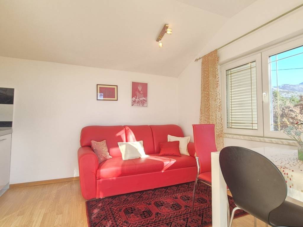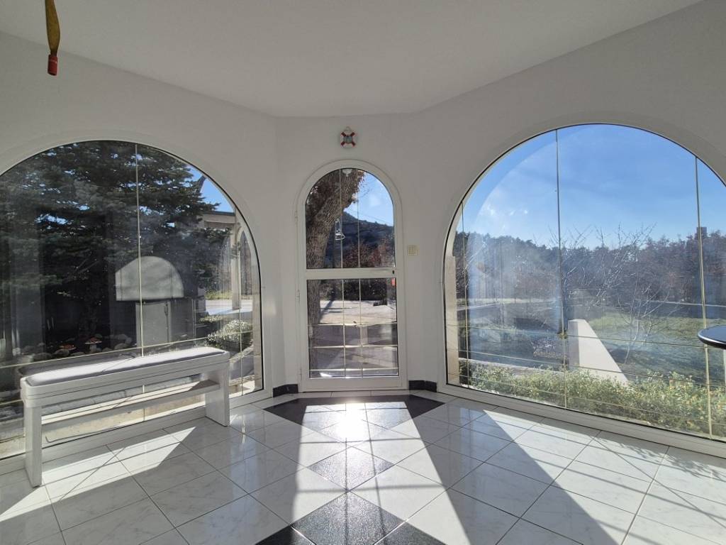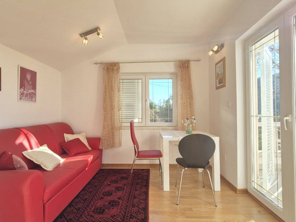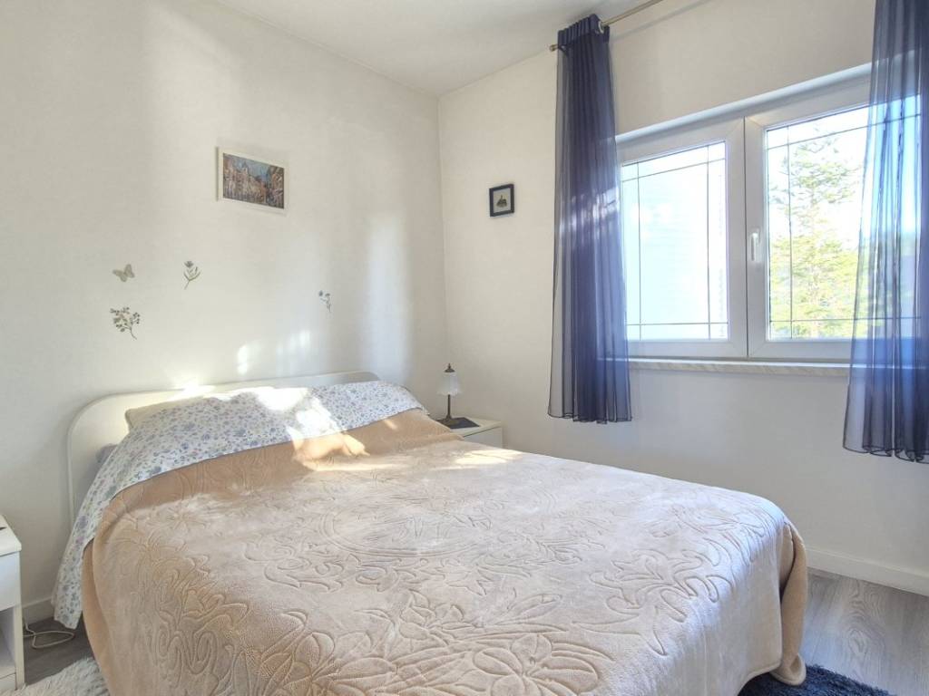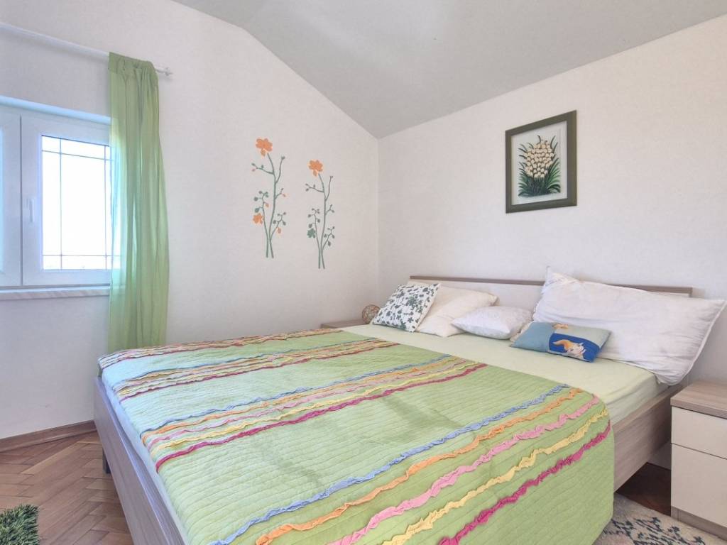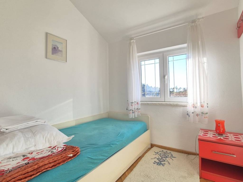 The house is situated on a plot of 850 m with the possibility of building a swimming pool. The ground floor includes a kitchen, dining area, and living room, one bedroom, a bathroom, two winter gardens, and a storage room with direct access to the garage. The upper floor features three bedrooms, a bathroom, and an additional room arranged as a living area with a small kitchen and access to the terrace. The house has an indoor fireplace, and the outbuilding, used as a cellar, also contains a fireplace. In addition to the garage, there are two outdoor parking spaces. The location is suitable for rafting, cycling, and hiking, while the nearest beaches are approximately 15 minutes away by car.