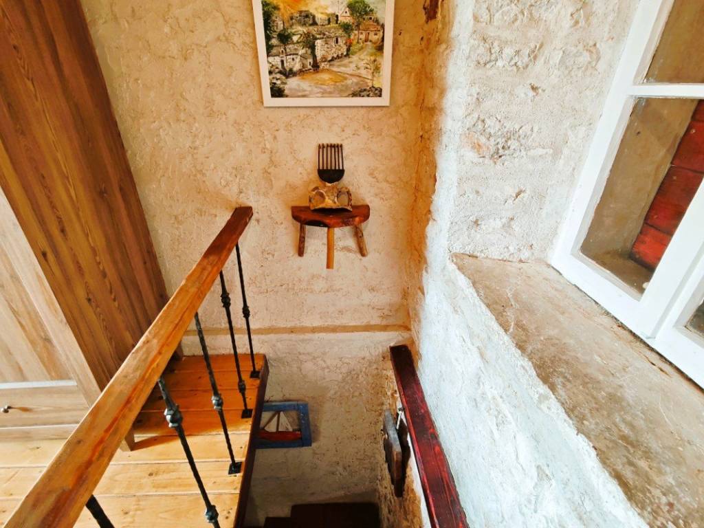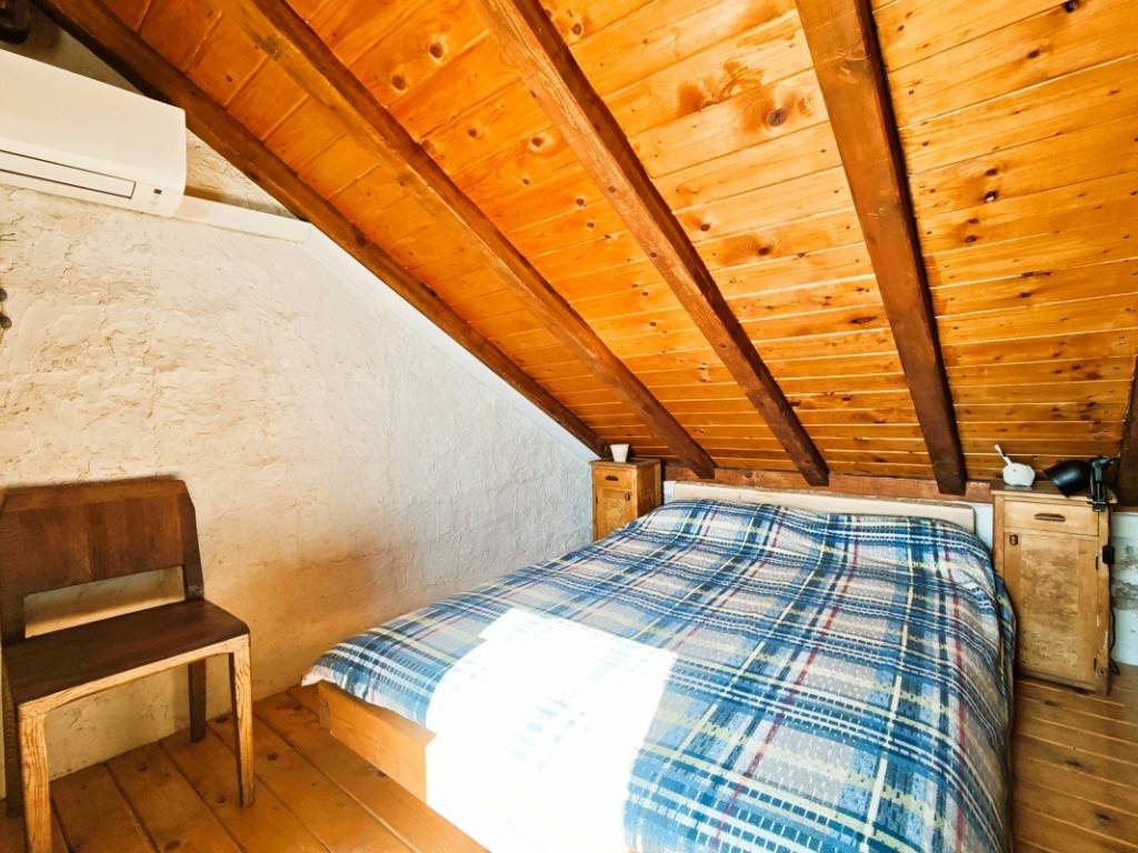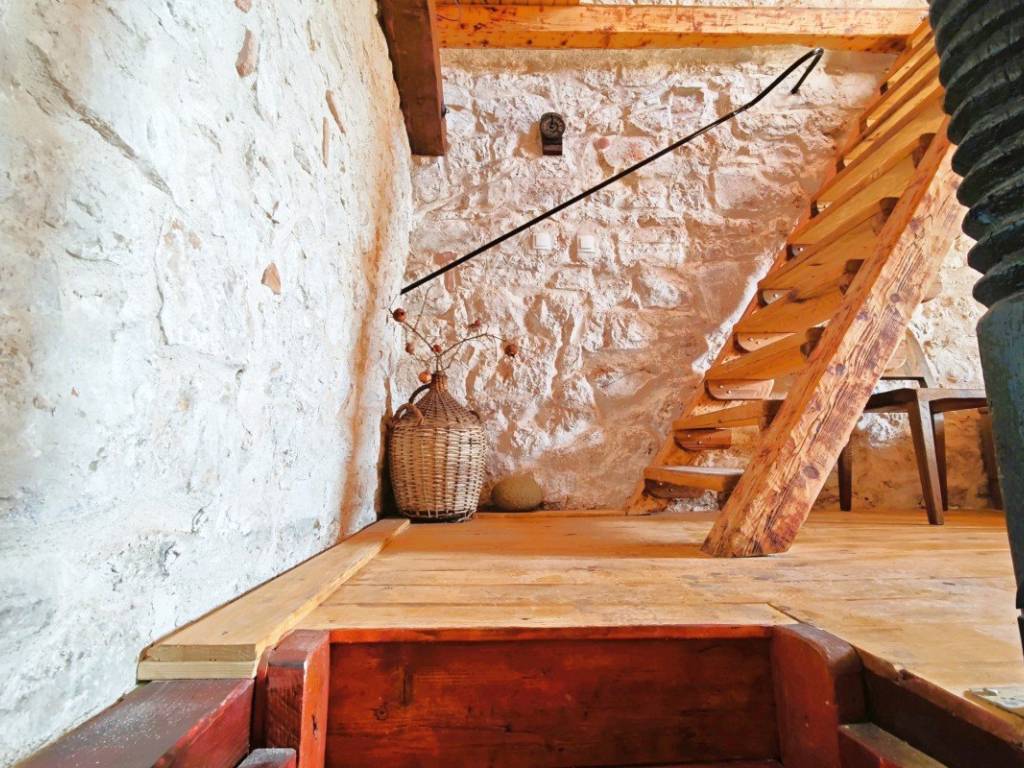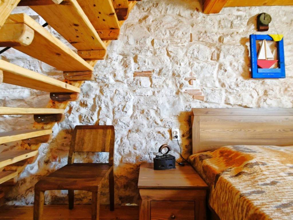 On the ground floor there is a living area with a kitchen and dining room where a fireplace with the possibility of grilling and preparing peka provides a special atmosphere, and a bathroom. On the first floor there is a spacious bedroom with rustic solid wood furniture, and in the attic there is an additional bedroom with access to a terrace with a beautiful view of the town, nature and the sea. There is also an outdoor shower on the terrace.