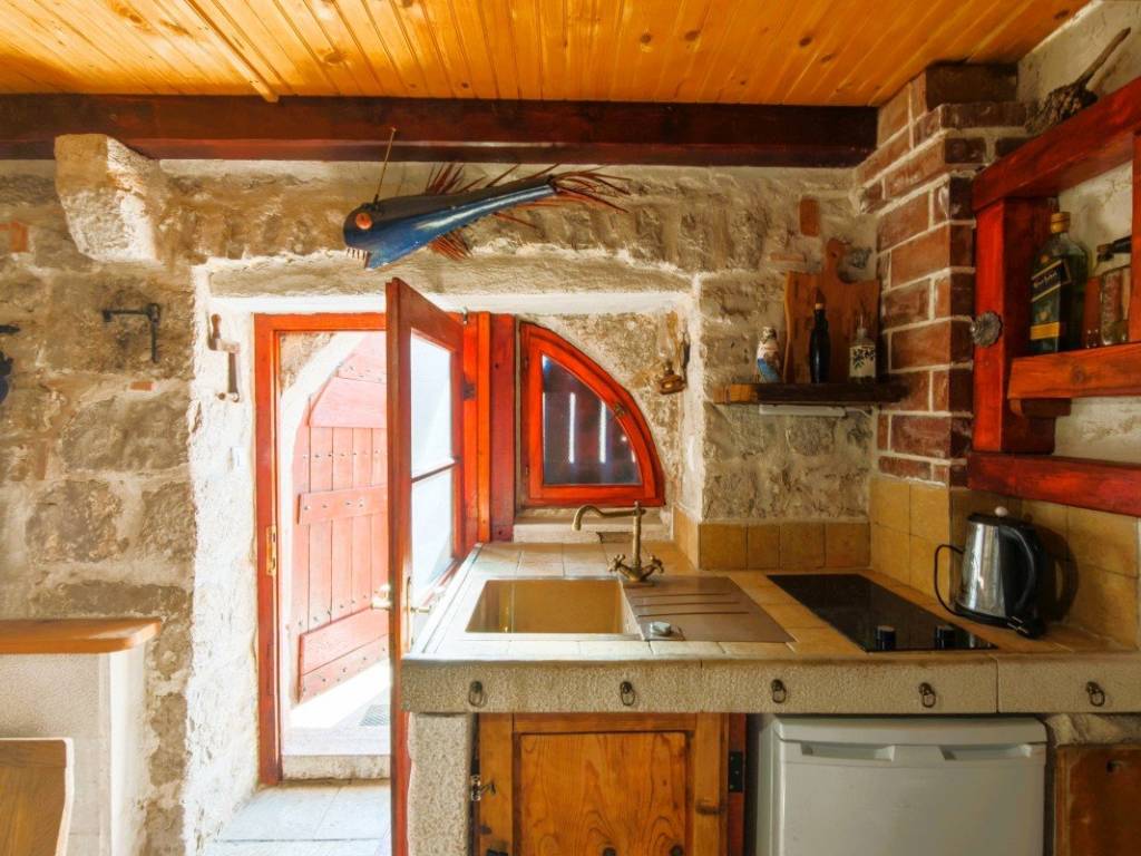 The interior exudes authentic Dalmatian style with lots of natural materials, solid wood and handmade details that create a warm and cozy atmosphere. The house is fully furnished and equipped and is sold as such.