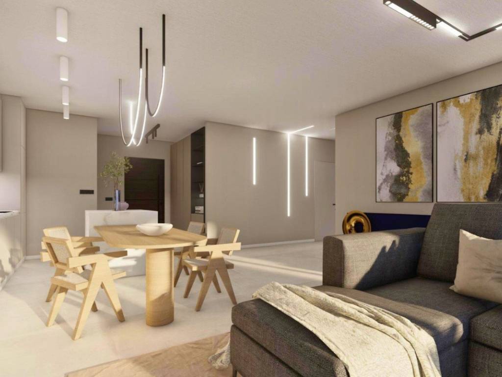 On the first floor there are also two apartments of the same size and layout, with the addition of a covered terrace (10 m) which is ideal for a jacuzzi. Each apartment also has a spacious 70 m roof terrace, with the possibility of arranging a summer kitchen, pergola and lounge area, creating the perfect space for relaxation and enjoyment outdoors.