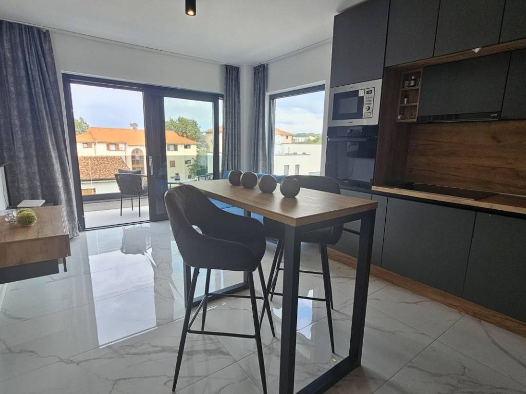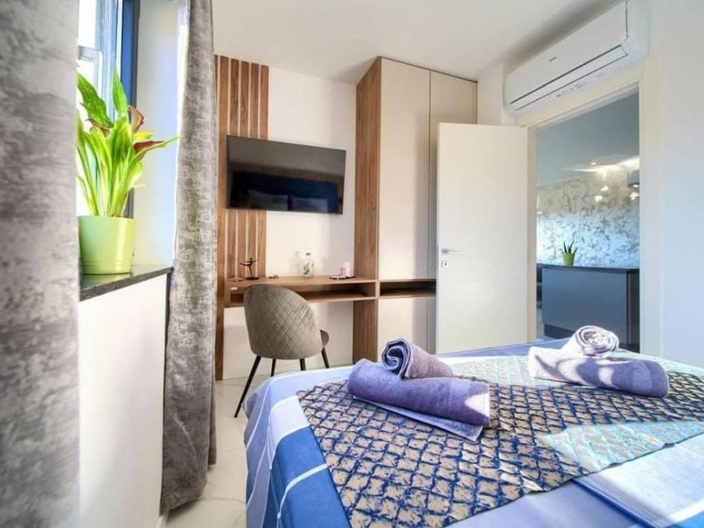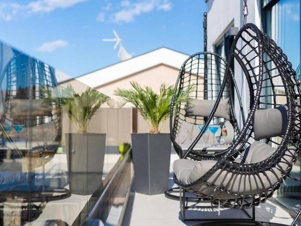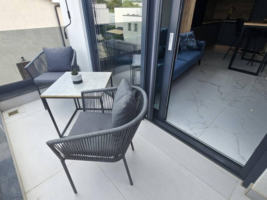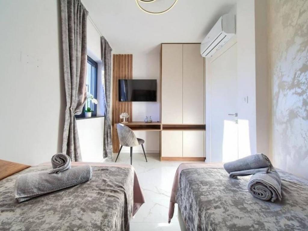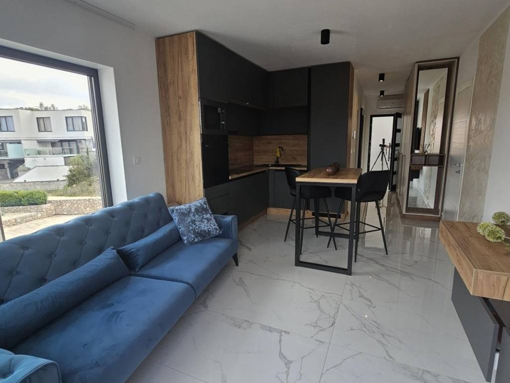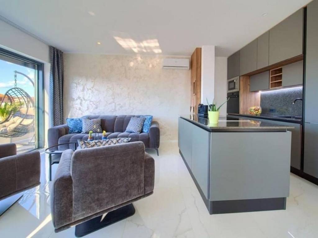 Na prodaju je penthouse apartman koji zauzima cijelu etažu drugog kata višeobiteljske zgrade, a sastoji se od dva odvojena apartmana. Ukupna stambena površina iznosi 96 m. Veći apartman obuhvaća ulazni hodnik, dvije spavaće sobe, kupaonicu, dnevni boravak s kuhinjom i blagovaonicom te terasu s pogledom na more. Manji apartman sastoji se od ulaznog prostora, kupaonice, spavaće sobe, kuhinje s blagovaonicom i dnevnim boravkom s izlazom na balkon, također s pogledom na more.