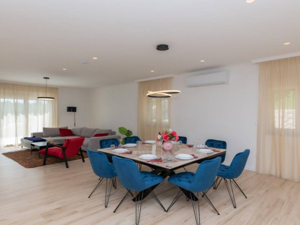 The villa is fully air-conditioned, has underfloor heating with a heat pump, wooden and aluminum joinery, security doors and its own parking and storage room. It is oriented to all four sides of the world, which allows it to have plenty of natural light throughout the day.
