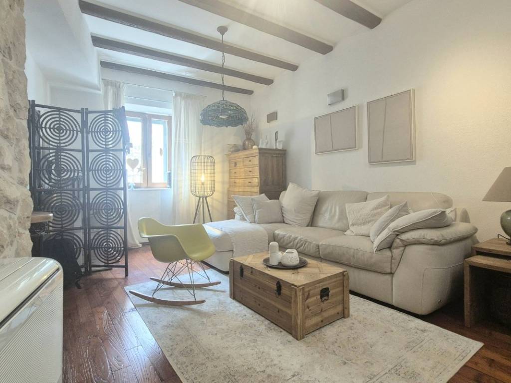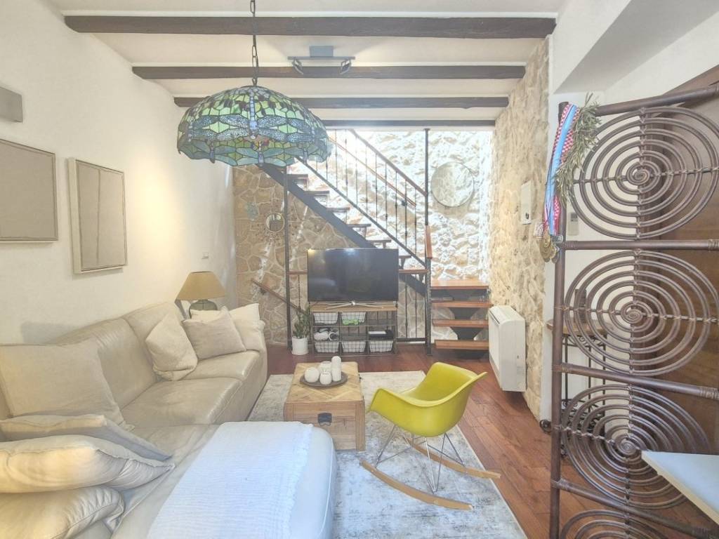 A terraced stone house is for sale, located in the very heart of the city. The total net area is 154 m, of which 150.4 m is living space, and a covered terrace measures 5 m.