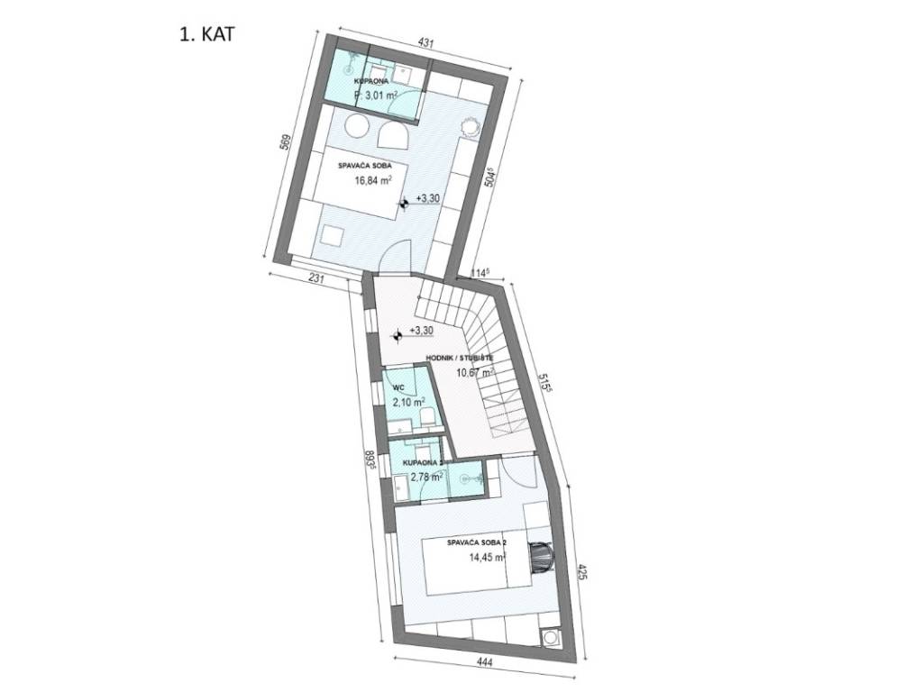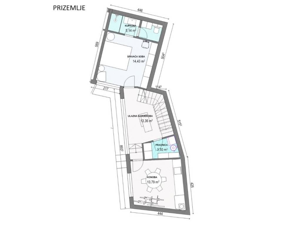 There is also an option for a modern house with a living area of 160 m2, which extends over three floors and contains a tavern, an entrance hall with an engine room and a laundry room, and a master bedroom with a bathroom. On the first floor there are two bedrooms with two modern bathrooms and one toilet, while on the second floor there is a large living room, a dining room with a bar and a spacious kitchen and an exit to the roof terrace above the whole house with a wonderful view of the sea.