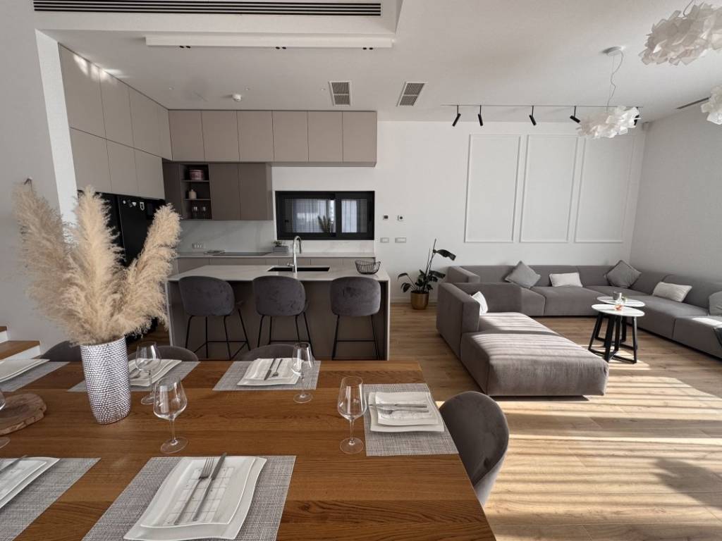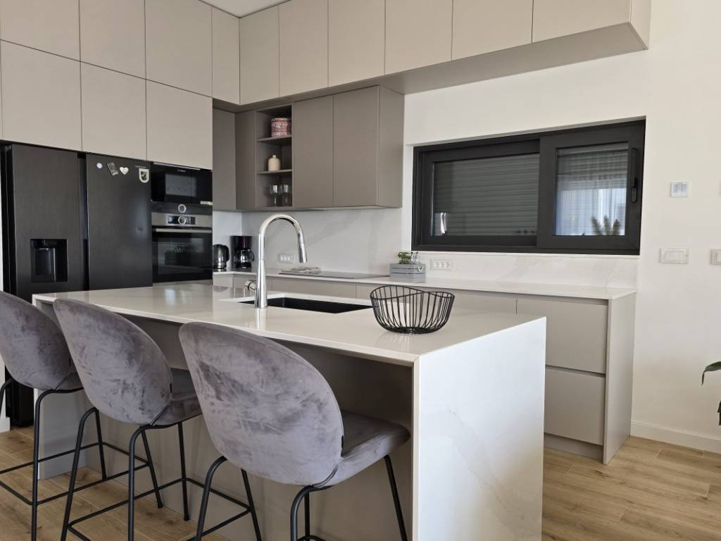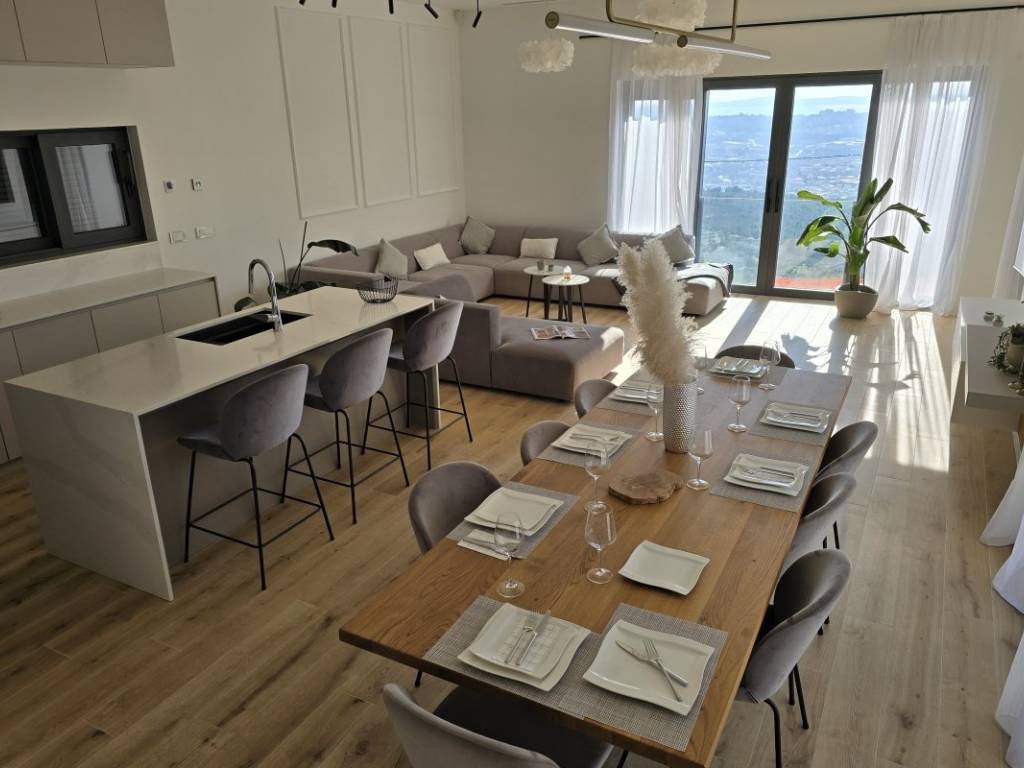 The exit to the spacious terrace with a heated pool and sundeck is located on the mezzanine. From the pool you can see the entire city of Split in the palm of your hand. Also in the yard there is a summer kitchen that is used for socializing, all in sliding walls. Behind the villa there is a beautiful garden intended for children to play, but also to rest in the shade during the hot summer months.