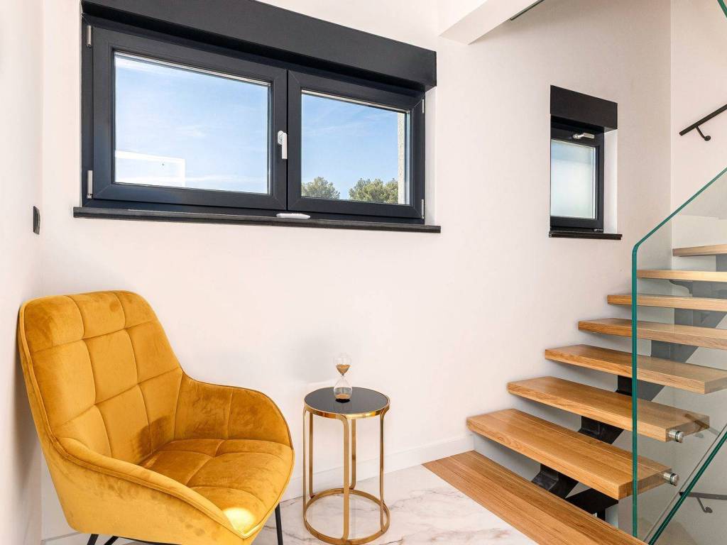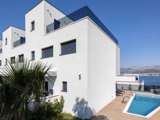The villas are located on the beautiful island of Čiovo, in an elevated position with a breathtaking view. With a total living area of 437 m2, the villas are completely identical and each villa extends over three floors.