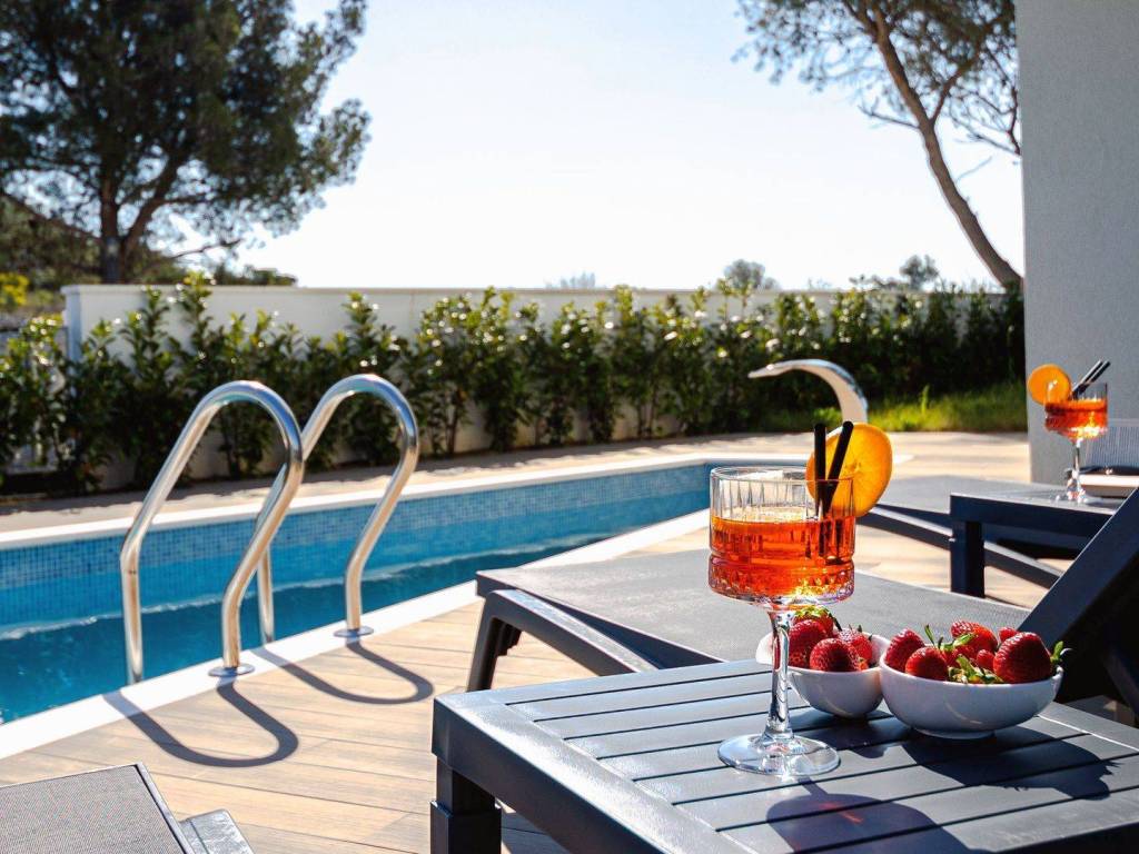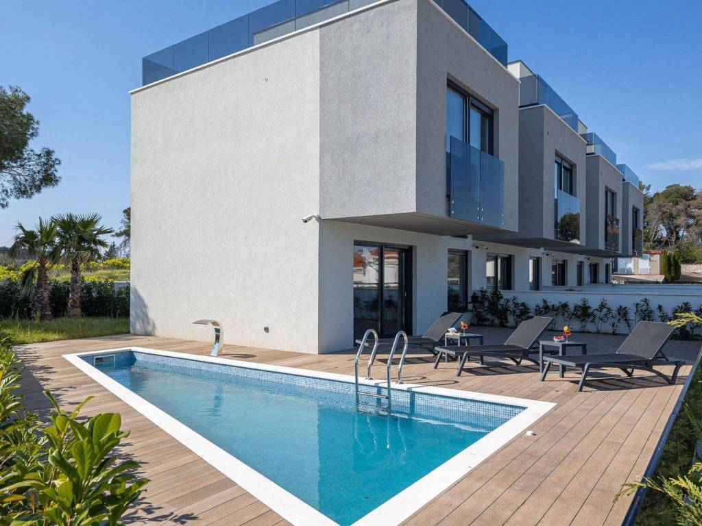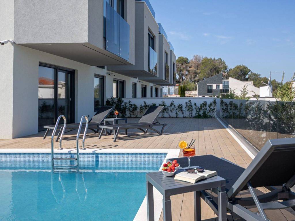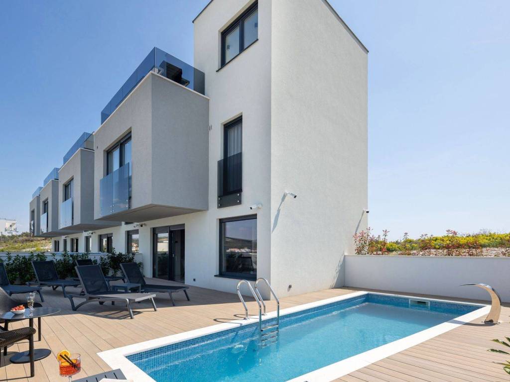 The entire facility is equipped with video surveillance, in addition to the swimming pool and sunbathing area, the villas also have a grill, a garden with Dalmatian horticulture and outdoor parking spaces.