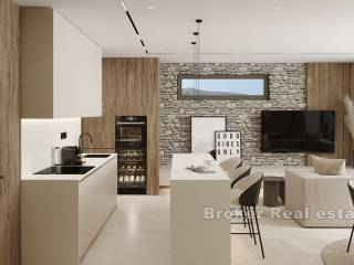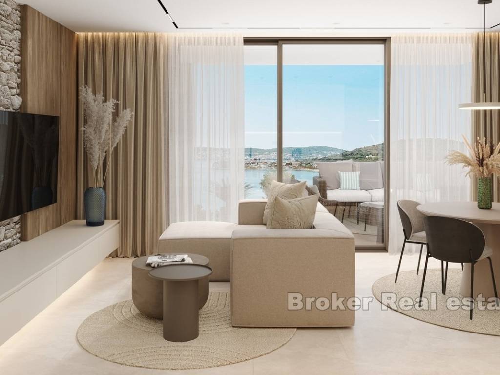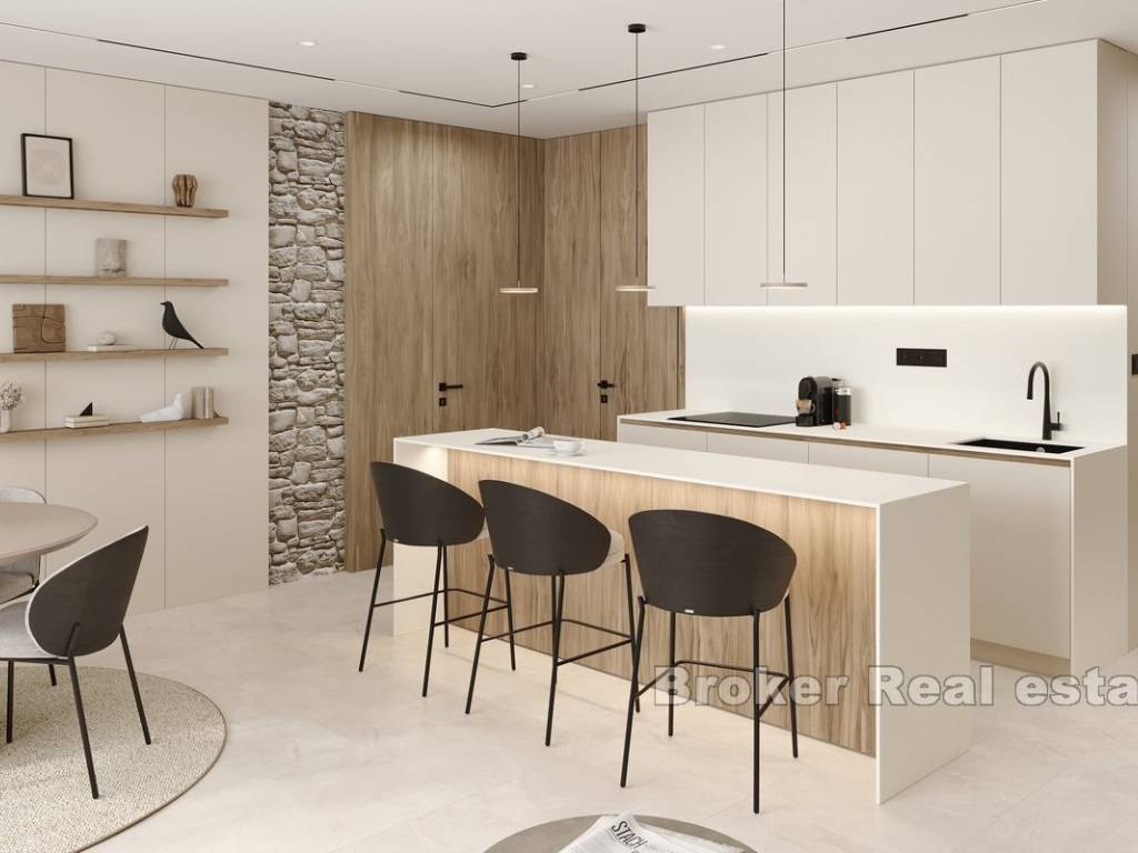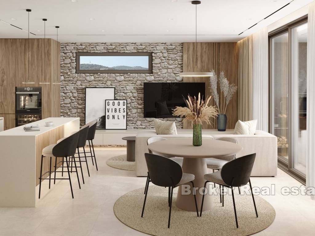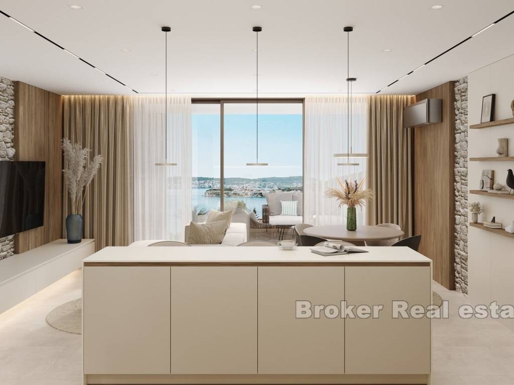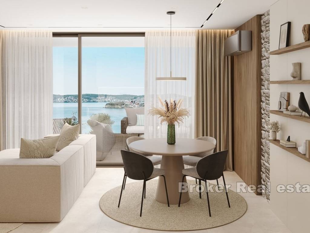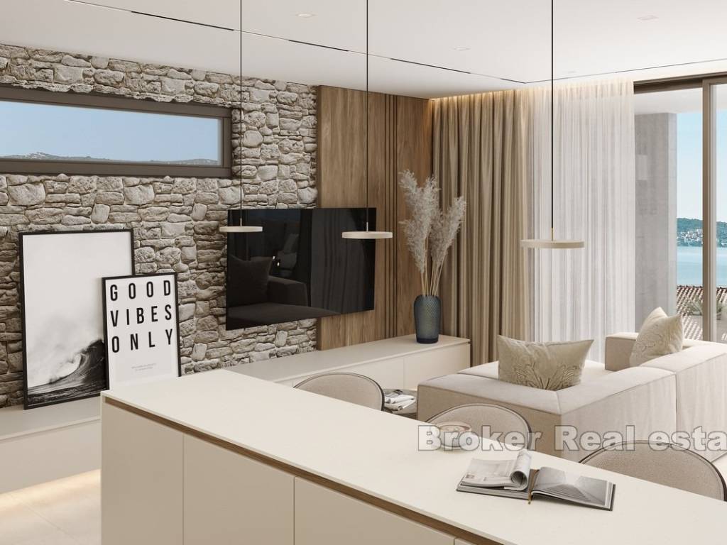 This newly built apartment is located in a modern, high-end building with only three exclusive residences, perfectly situated in Rogoznica, within walking distance to both the city center and the sea. Offering breathtaking panoramic views of the sea, the apartment has been constructed to the highest standards, featuring top-quality materials, state-of-the-art equipment, and sophisticated, custom-made furniture.
