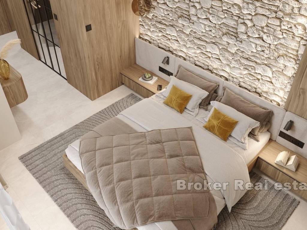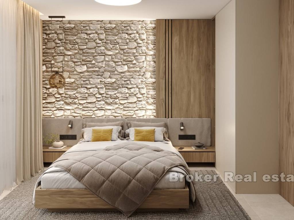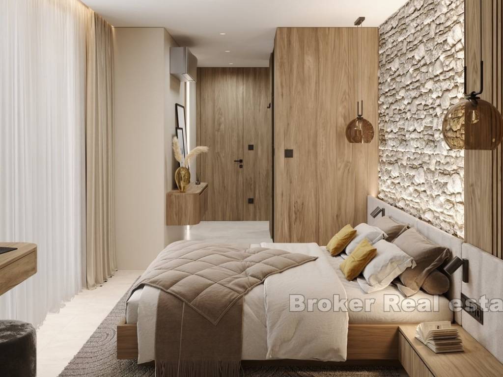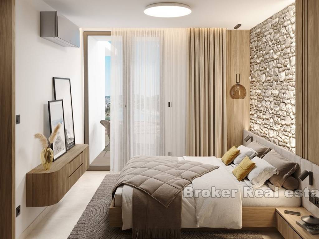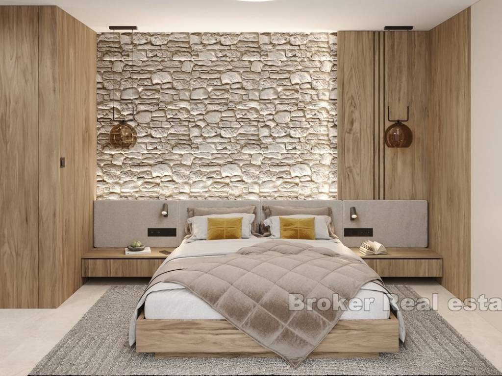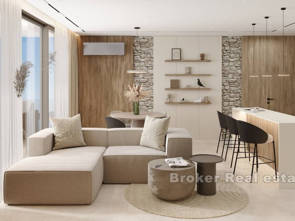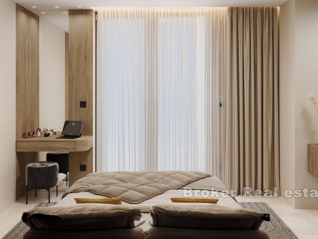 This newly built apartment is located in a modern, high-end building with only three exclusive residences, perfectly situated in Rogoznica, within walking distance to both the city center and the sea. Offering breathtaking panoramic views of the sea, the apartment has been constructed to the highest standards, featuring top-quality materials, state-of-the-art equipment, and sophisticated, custom-made furniture.