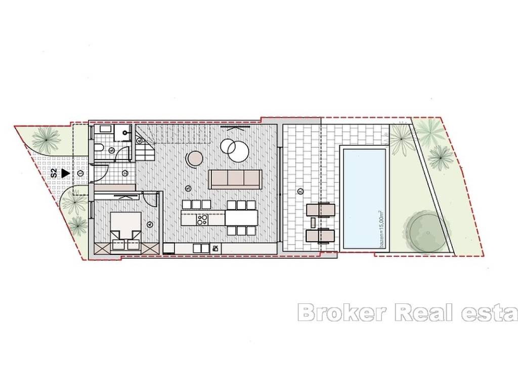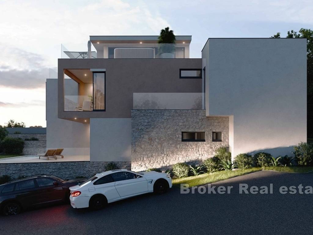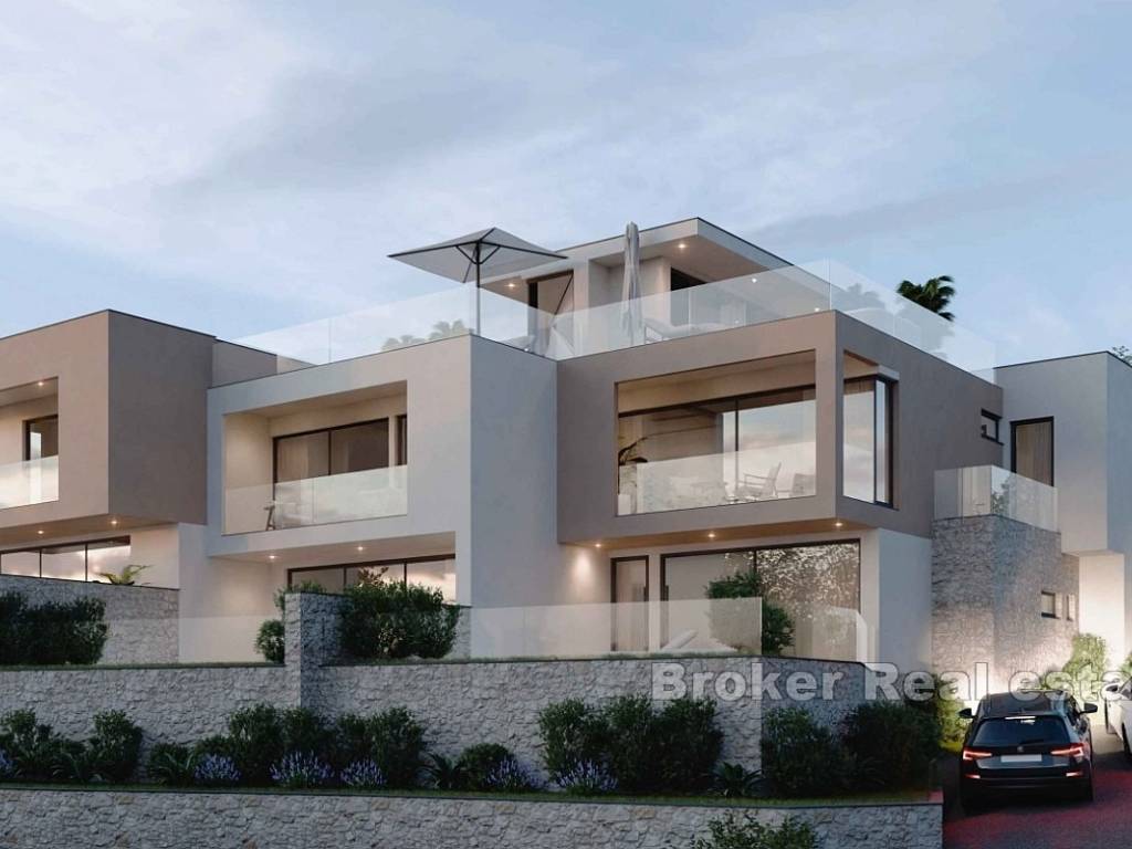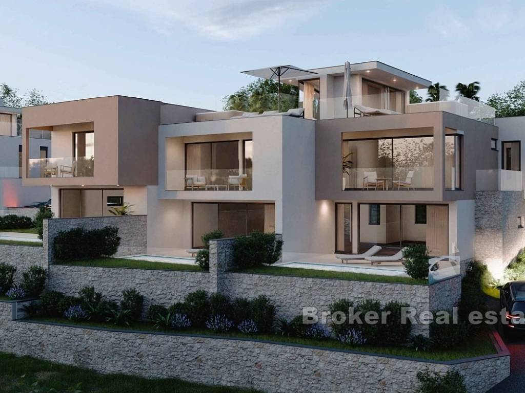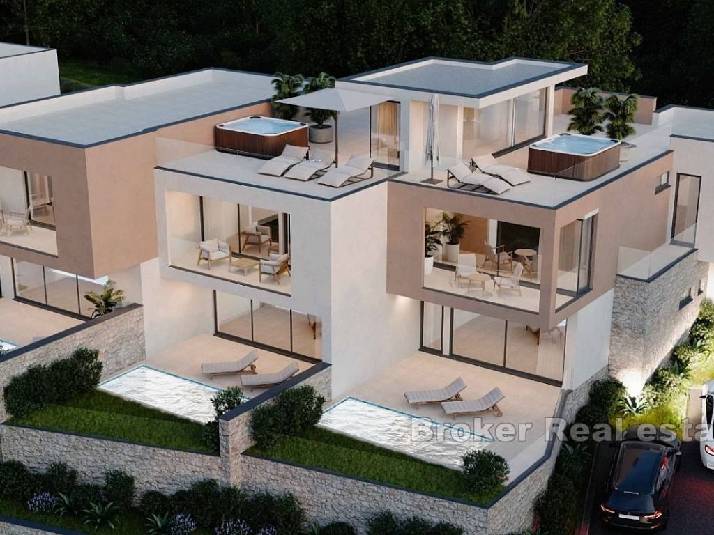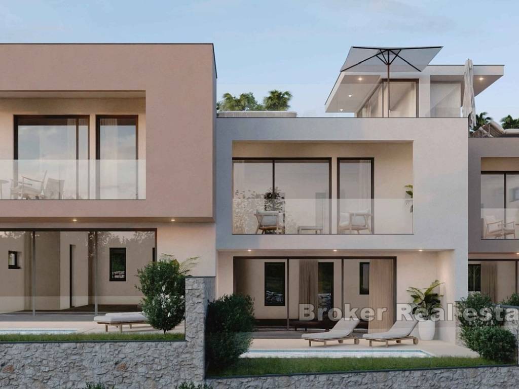 A new complex of houses with a swimming pool, garden and parking is for sale. The houses are located on a plot of 700 m2, which, due to its position, offers an open view of the sea.