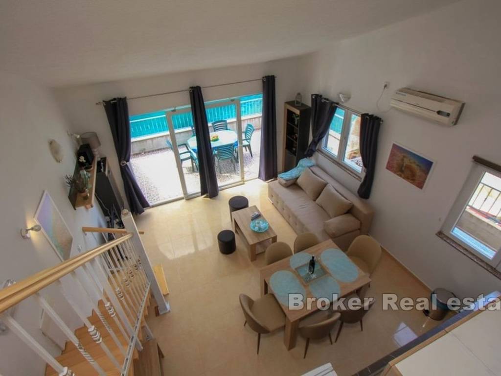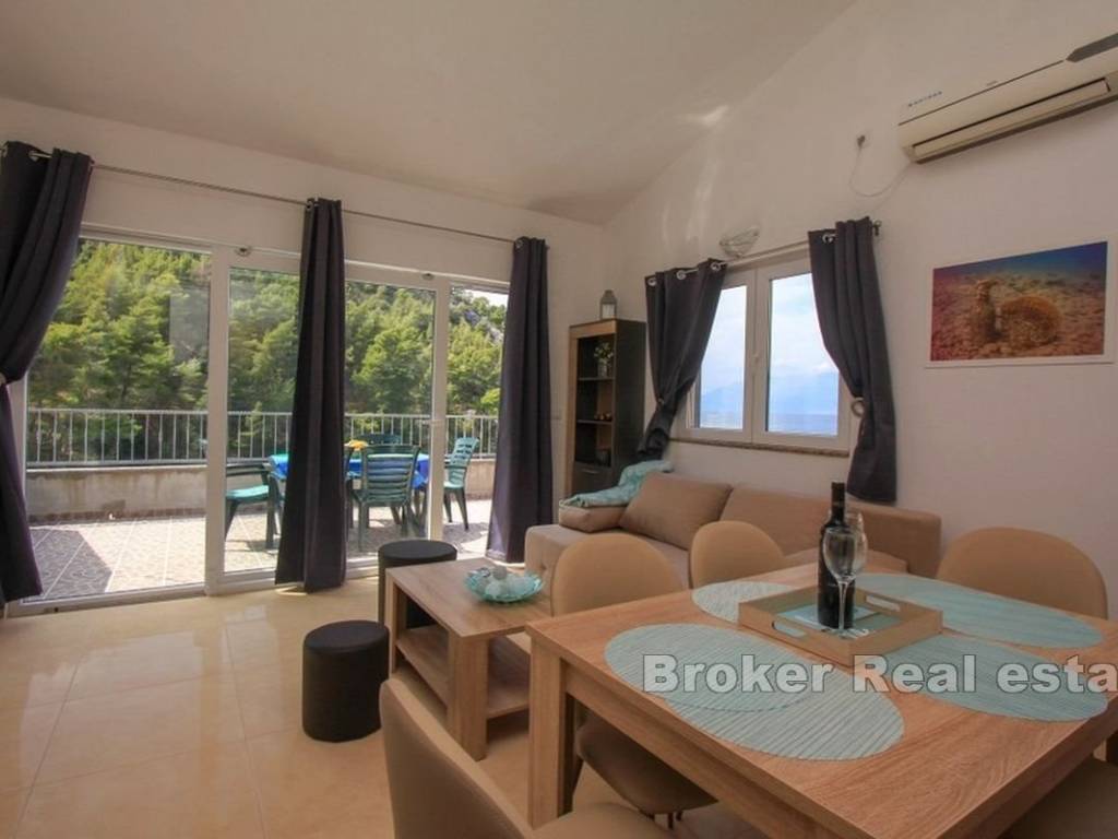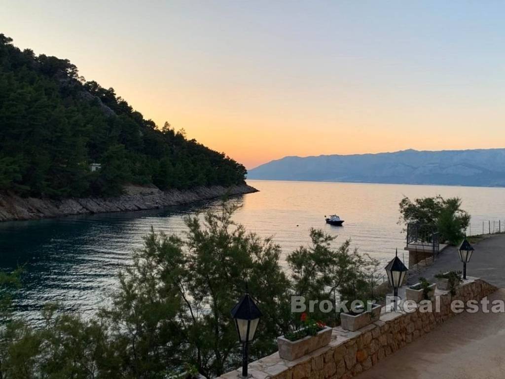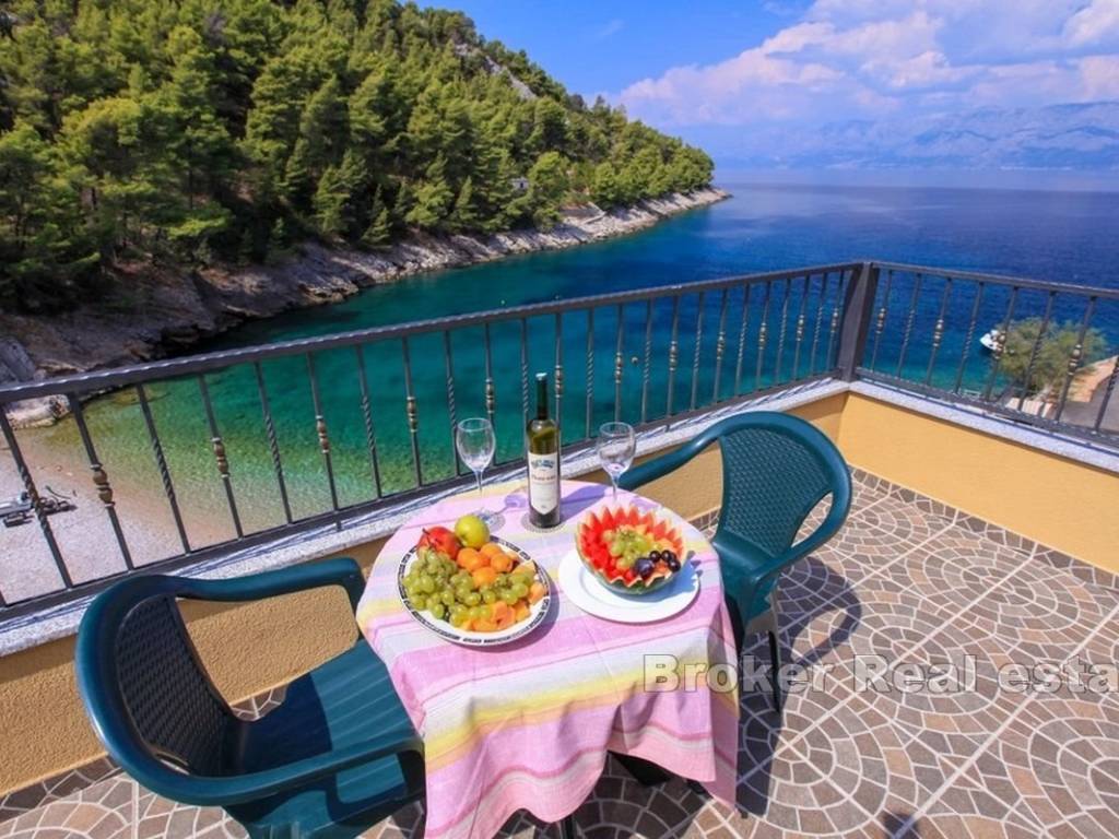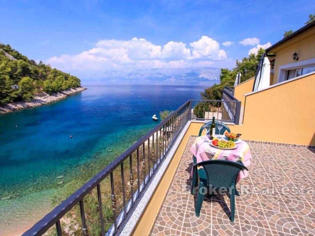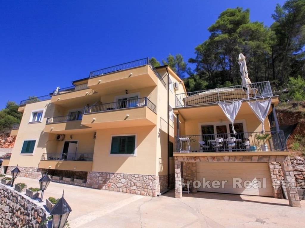 House for sale, first row to the sea. Located on the beautiful island of Hvar. This unique property extends over 4 floors and consists of 11 fully furnished apartments. Each apartment has a kitchen and a bathroom, and a balcony or terrace with a breathtaking view of the sea. There is a pebble beach right in front of the building. Complete peace is guaranteed and this property is great for all those who want to escape from the fast-paced everyday life. An asphalted road leads to the bay itself, where there are only a few houses. A large parking lot for 15 cars is provided in front of the house and in the garage.