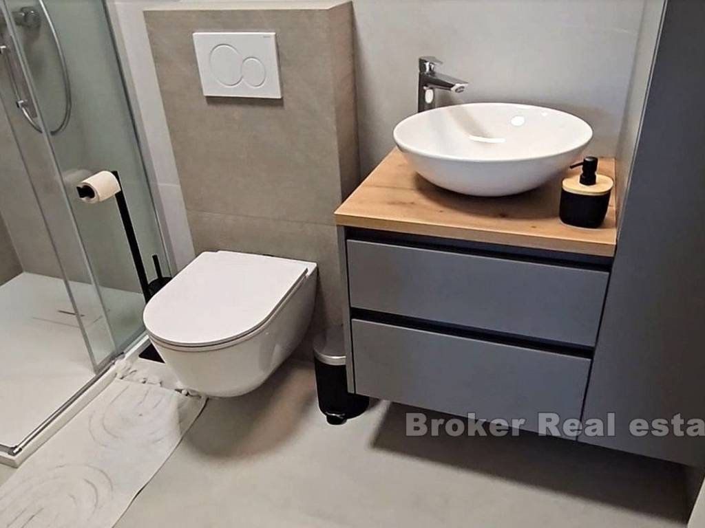 The ground floor consists of an entrance hall, a spacious living room, a bathroom, a modern kitchen, a bedroom and a one-room apartment with a private entrance.