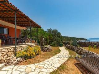 The house is located right next to the crystal clear sea and the rocky coast, where its sunbathing area with a pergola is located.