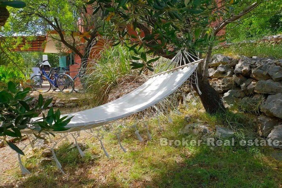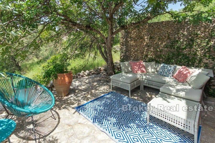 The yard of this house has been turned into a real small Mediterranean garden with a stone path, surrounded by old Dalmatian dry walls, full of Mediterranean medicinal plants, olive, carob and almond trees with plenty of corners for sitting and resting as well as a barbecue area.