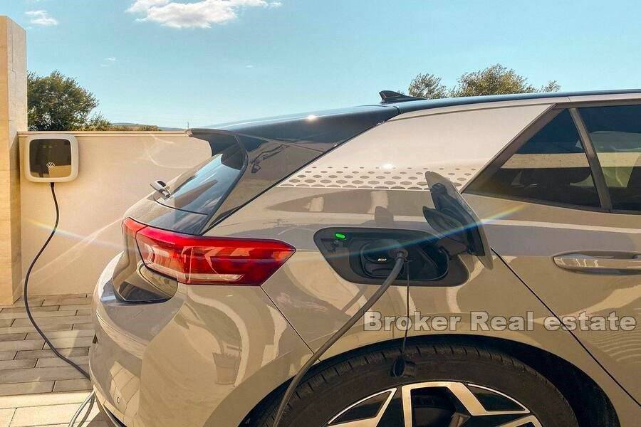The villa is furnished with custom-made furniture and is also superbly equipped: video/alarm system, underfloor heating, heat pump for heating and cooling, solar panels for hot water, wood-burning fireplace, 5 indoor air conditioning units, porcelain panels on the edges of the garden, fast charger for electric cars, etc.