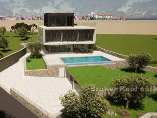 This contemporary villa under construction is located in an extremely quiet and one of the most beautiful locations in this area with an open and stunning view of the sea and one of the most beautiful sunsets. It is located in an area built with mostly smaller, luxurious villas, 400 m from the sea.