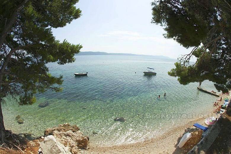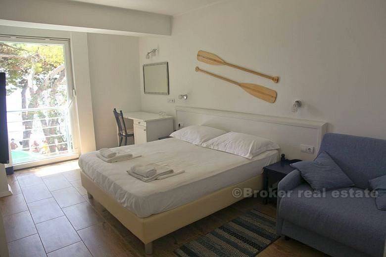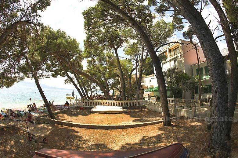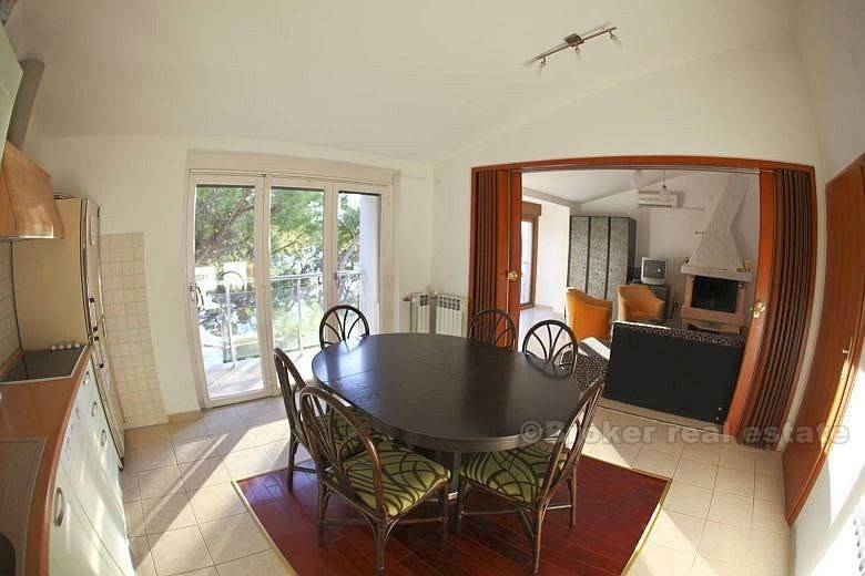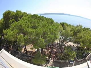 Na vrhu zgrade nalazi se prostrana terasa od 73 m2 potpuno okupana suncem. Pogled s vrha je nevjerojatan: sjedite odmah iznad borova, a preko njihovih vrhova proteže se prekrasno more sve do otoka Hvara, a s desne strane do otoka Brača.