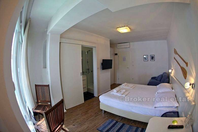 Sobe su također dizajnirane da budu povezane vratima i svaka ima unaprijed definirani prostor za mini kuhinju kako bi se sobe mogle iznajmljivati kao apartmani. Ukupno ima 10 prostranih soba koje mogu primiti 28 gostiju.