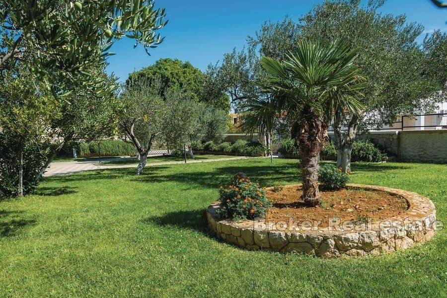There is a 24 m2 swimming pool, summer kitchen, barbecue and outdoor toilet on the landscaped garden. The exterior is enriched with a garden with a fountain, Mediterranean plants and flowers. It also has a garage that has been converted into a studio apartment with a bathroom and kitchen with a total area of 45 m2.