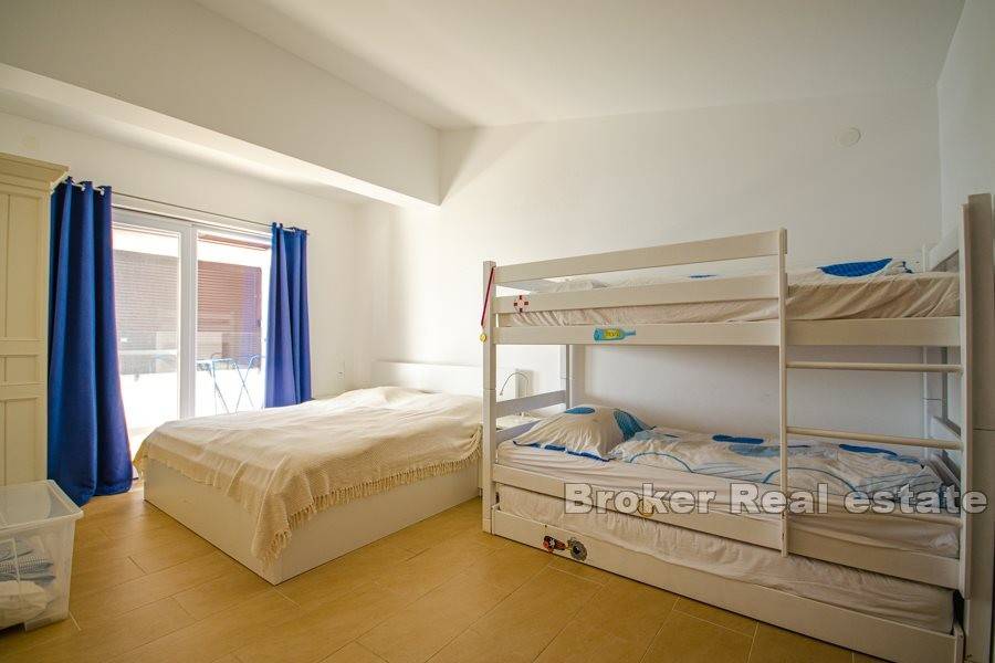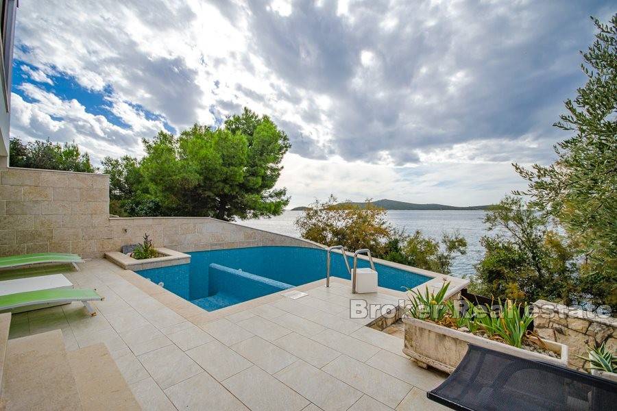 Property in an exceptional and secluded location near the town of Rogoznica. The house with a total living area of 150 m2 is located on a plot of land with a total of 320 m2. The house consists of a ground floor and a first floor, a total of 4 bedrooms, 3 bathrooms, a swimming pool on a beautiful terrace, an outdoor and covered kitchen, and a covered parking space. The microlocation is exceptional, just a few steps from the beautiful and clean sea, natural and rocky beach. The distance from the airport in Split is 25 km.