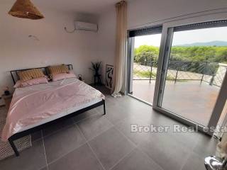 On the ground floor there is a living room with an open-concept kitchen and dining room, a bedroom with an en-suite bathroom, a guest toilet and a storage room where the laundry room and technical equipment of the house are located.