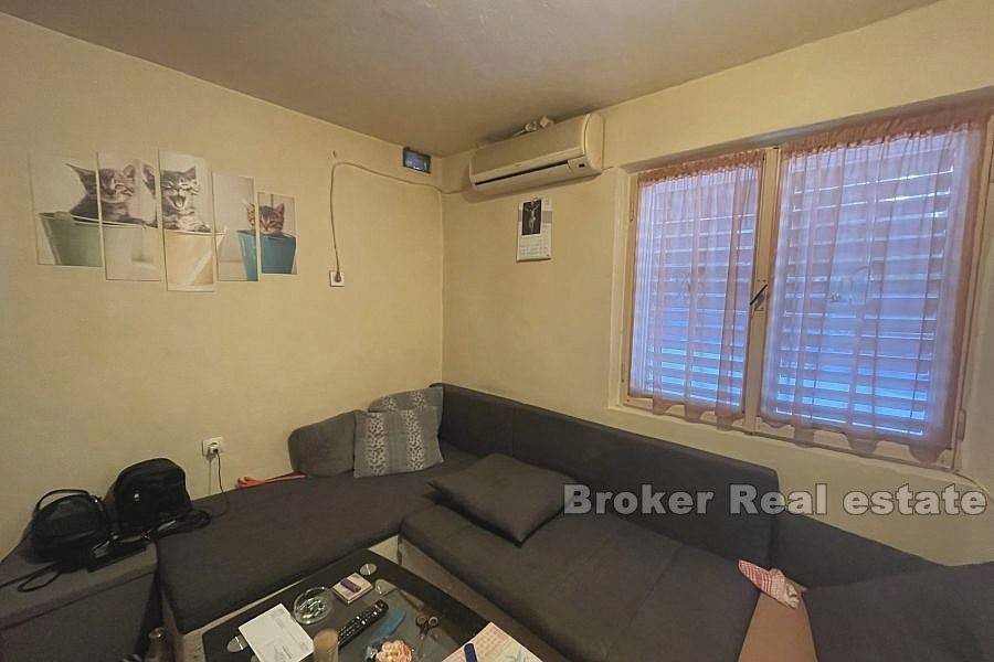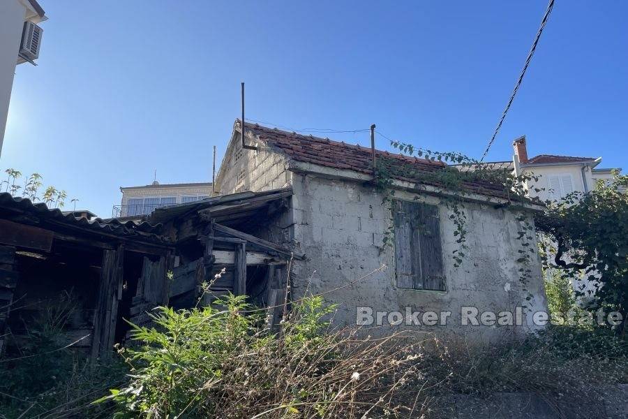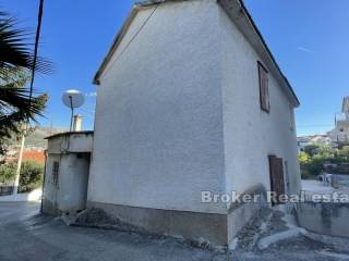 A semi-detached house near the center of Trogir, just a few minutes away from the UNESCO-protected old town. In addition to the main building of 110 m, there is also an auxiliary building of 19 m on a nearby lot for sale. The house extends over three floors and has a north-west orientation. On the ground floor of the house there is a tavern and an additional room with a courtyard. Above it is a two-story two bedroom apartment connected by an internal staircase. On the first floor there is a kitchen, a living room, a bathroom and one bedroom, while on the second floor there is a spacious bedroom with access to an uncovered terrace with a view of the city of Trogir. The house also has an auxiliary building with a yard of 93 m, where there is one parking space. The building needs to be completely re