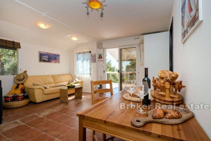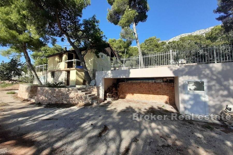 On the ground floor there is a studio apartment and a spacious storage room, while on the first floor there is a two bedroom smaller apartment. Behind the house are additional facilities (swimming pool, barbecue, volleyball court) while on the west and east side of the house there are two spacious terraces overlooking the sea.