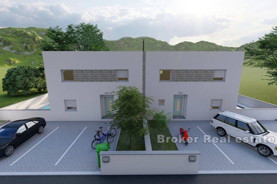 The villas are currently under construction. The planned completion of the works is expected at the end of 2022. The villas together make one double object with a mirror floor plan, living area of 143m2, located on a plot of 210m2.