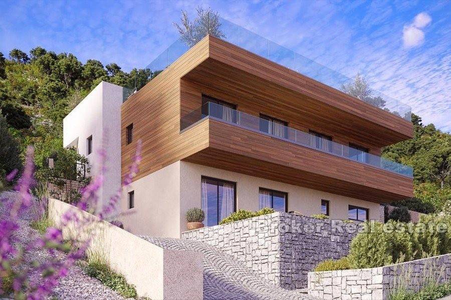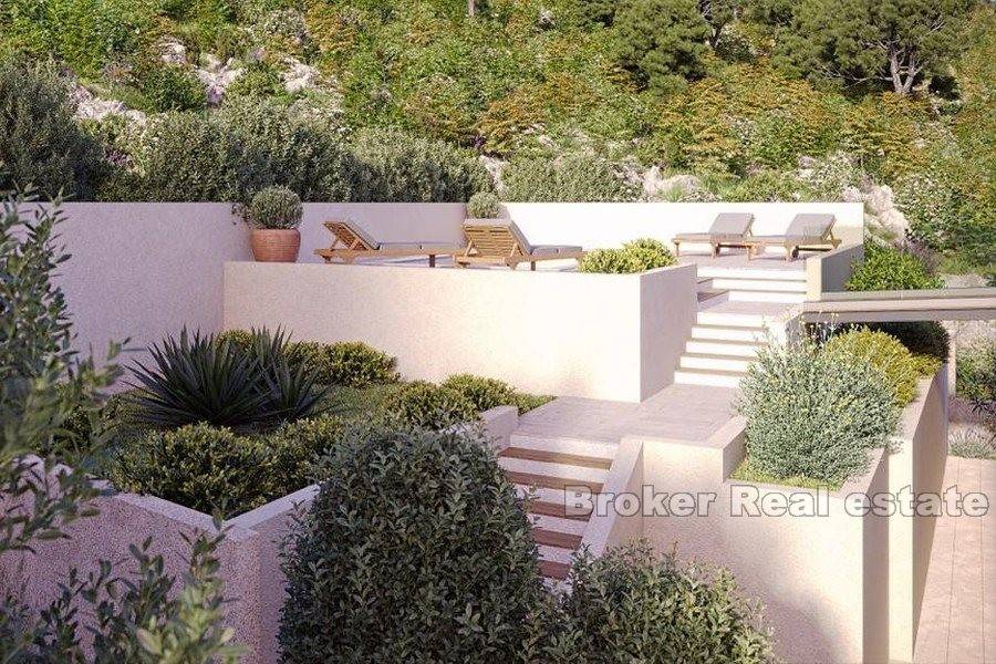 There are three parking spaces on the cultivated garden of 600 m2. Behind the villa there is a space for a swimming pool and sun deck, which have an open view of the sea due to the excellent conceptual solution of that position.