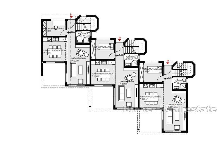 For sale are three carefully designed, duplex apartments of top quality, each with its own pool, garden, separate entrances and panoramic sea views. They are located in an attractive newly built complex. The project stands out with refined materials natural stone and top-quality ceramics give the entire space additional value and aesthetics.