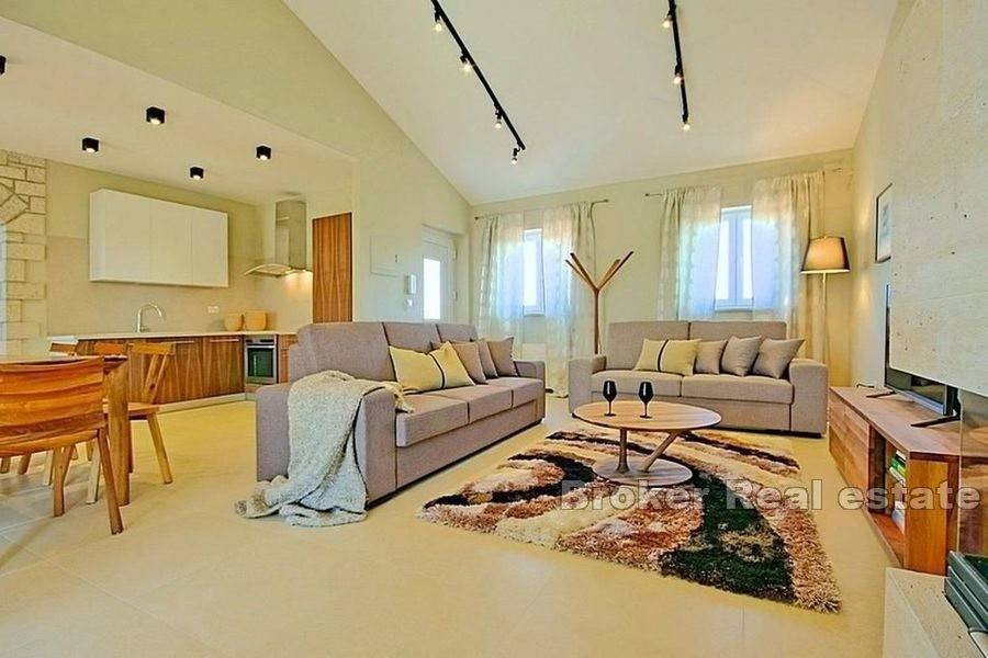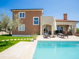 House with a pool located in an attractive location 10 km from Poreč and 8 km from the sea. The property with a living area of 155m2 is located on a plot of land of 750m2.