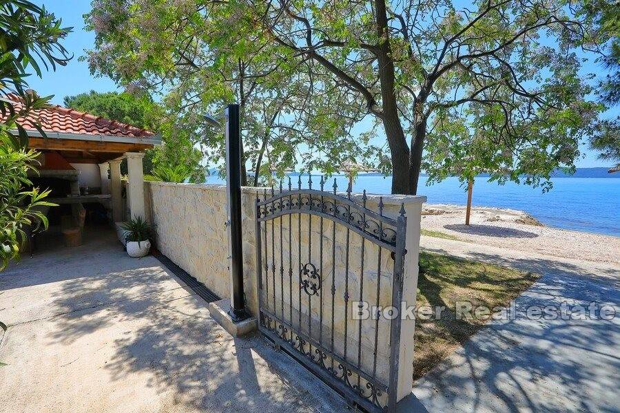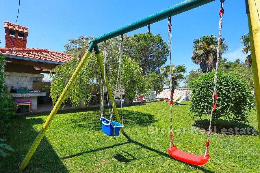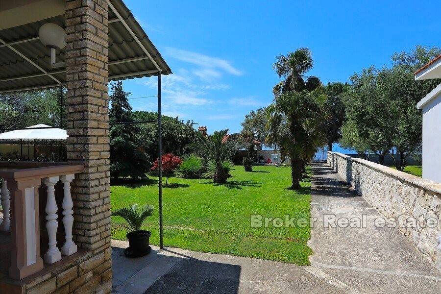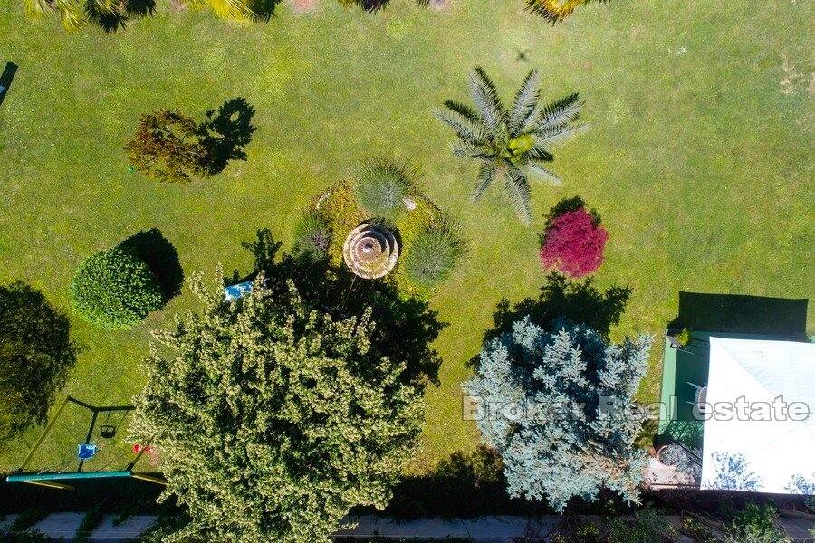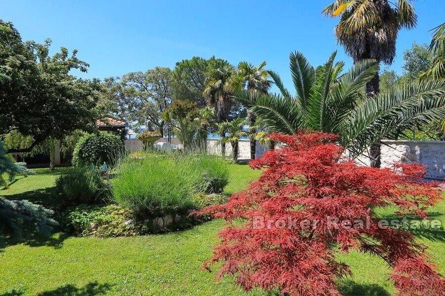 The entire yard of this villa is fenced and cultivated, a good part of the yard has been turned into a lawn with palm trees and various Mediterranean plants. A brick fireplace with a pergola has been built in the lower part of the yard next to the sea, a place intended for summer family gatherings. From the yard, you can go directly to the pebble beach, where there is also a sun deck and a mooring for the boat.