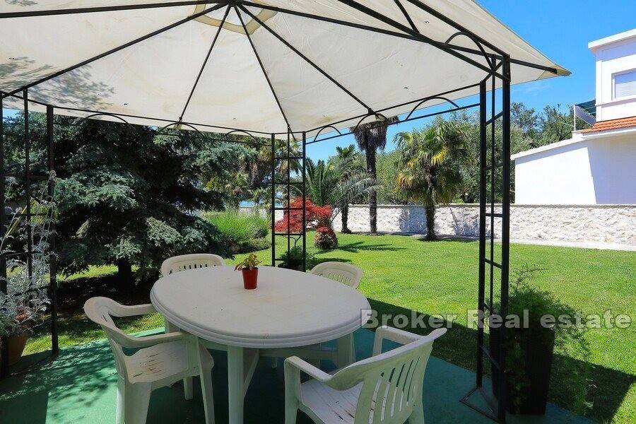 On the ground floor there are three storage rooms, a garage and a comfortable three-room apartment with a large covered terrace.