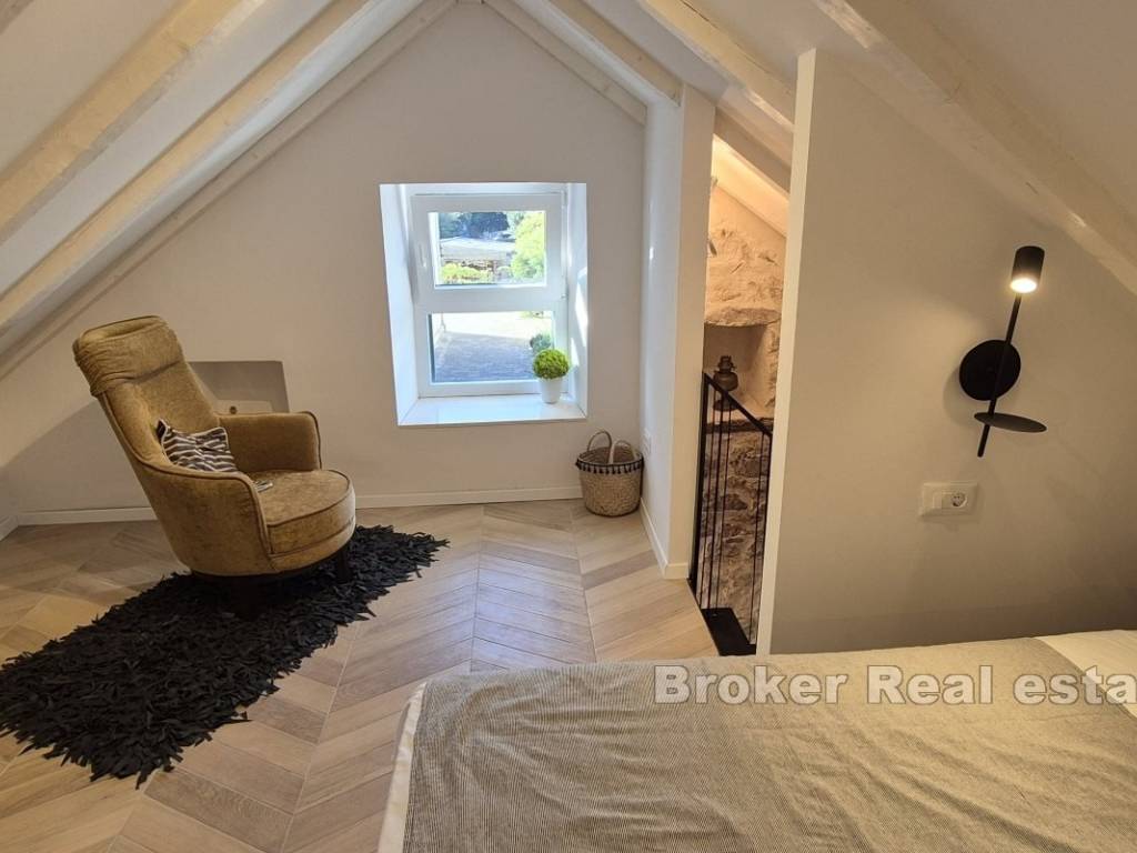 This charming stone house in the heart of Kaštel Štafilić offers an authentic Dalmatian experience combined with modern comfort. With a total living area of 60 m, the house has been fully renovated and is ready for immediate occupancy. The complete renovation, which includes new floors, roof, electrical and water installations, and all new windows and doors, was done with attention to detail, showcasing the propertys full potential. It is sold fully furnished and equipped, with the potential to be categorized with 4* for tourism purposes.