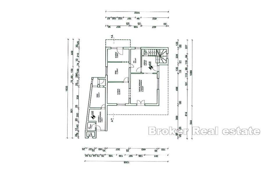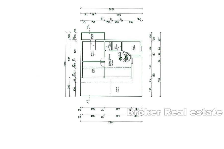 studio apartment with a terrace, while on the third floor there is a three-room apartment with a large terrace. There is another one-room apartment on the ground floor next to the house.