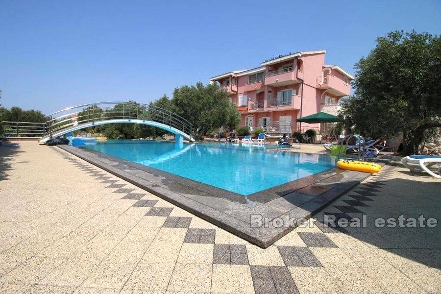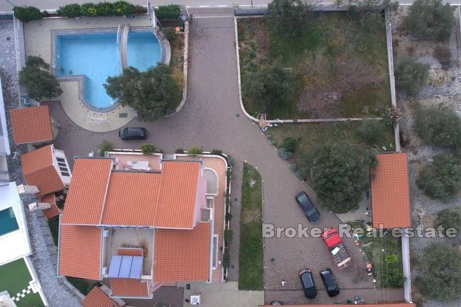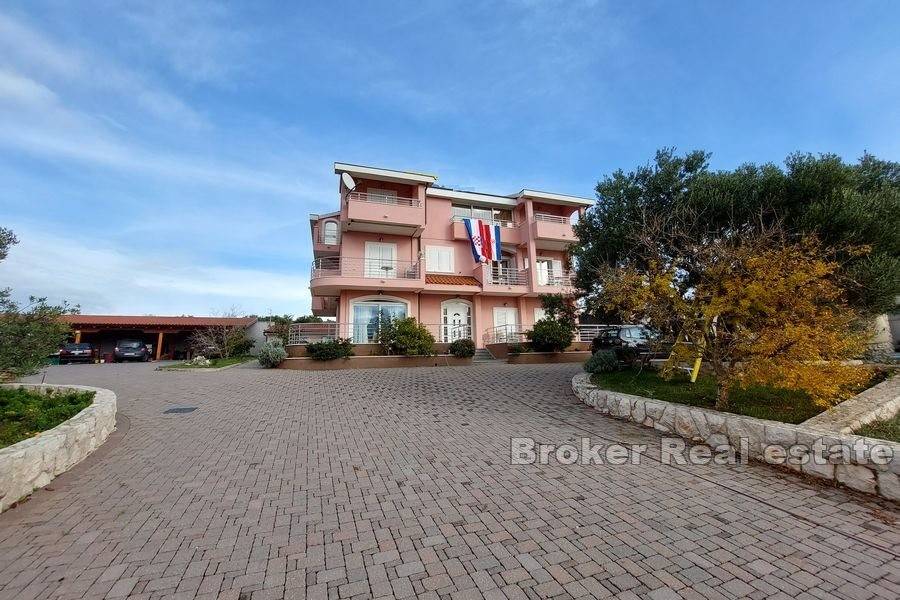 Apartment house with a swimming pool located on a spacious plot of 2395 m2 in a quiet location in Primošten. The house with a living area of 647 m2 is spread over three floors with 6 residential units.