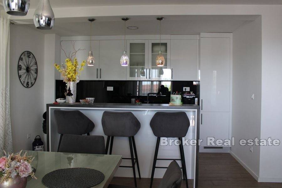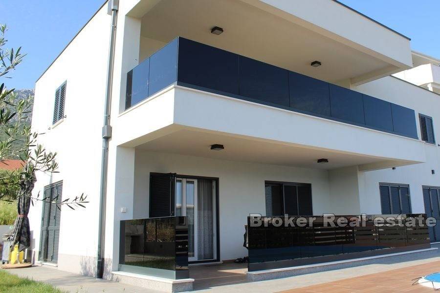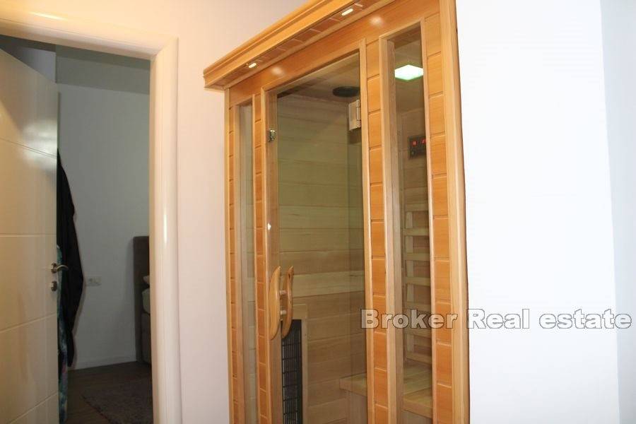 The property consists of 2 floors. On the 1st floor, there is a beautifully decorated three-bedroom apartment with a large living room, dining room, kitchen, 3 bathrooms, a sauna, which leads to a beautiful terrace with a swimming pool. On the 2nd floor there is an unfurnished three-room apartment consisting of 3 bedrooms, 3 bathrooms, living room, kitchen and balconies with a beautiful view of the sea.