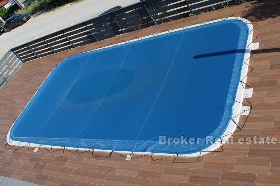The house is equipped with a heated pool, air conditioners, barbecue and outdoor parking spaces on the south and north sides.