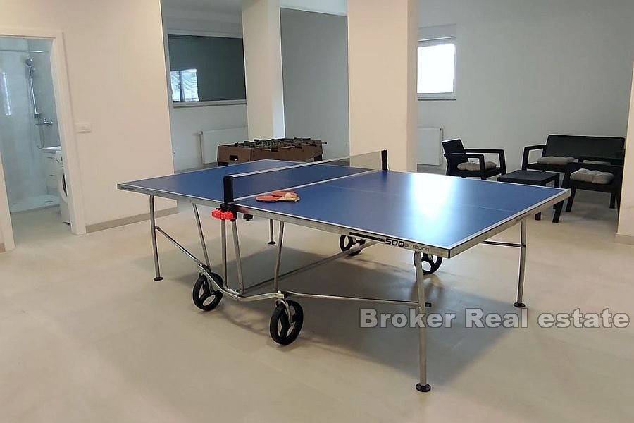which is equipped with a swimming pool and sun deck. On this floor there is also a room with entertainment such as table tennis, table football and the like.